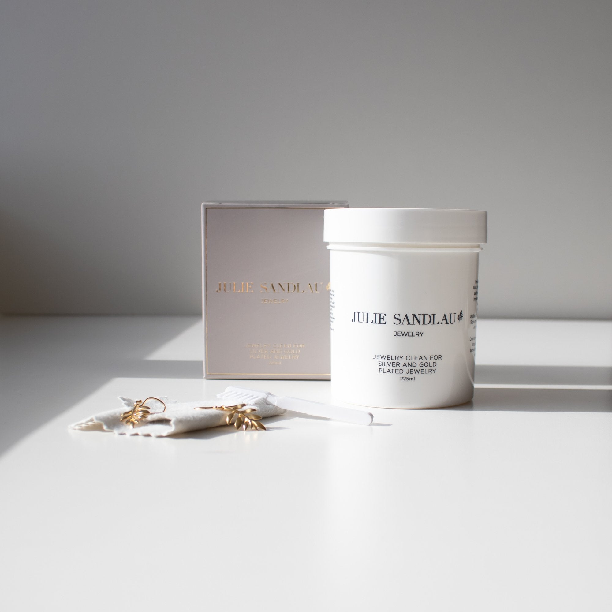 Rensevæske og klud til dine smykker. Fjerner anløb - en naturlig proces der mørkner overfladen når det udsættes for ilt. Brugsanvisning kan findes på æskens bagside.