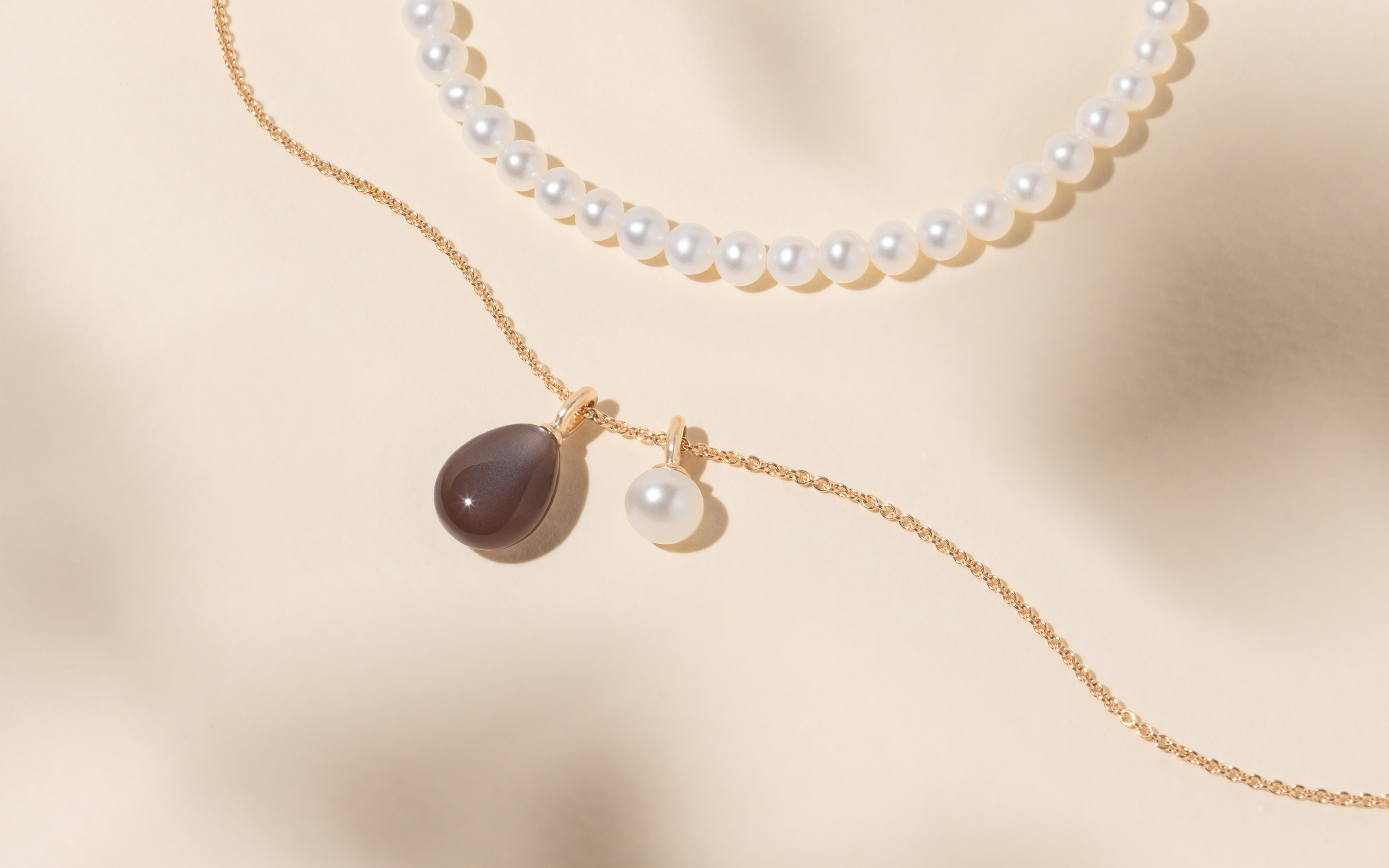 Månesten er lysende ædelsten fra feltspat-familien, kendt for deres bløde glød, adularescens. Tilgængelig i White, Chocolate og Rosy Moonstone. Hver sten udvælges nøje for farve, klarhed og naturlig glans og slebes, så dens diskrete, måneskinslignende stråleglans fremhæves.