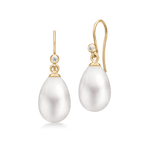 Smukke og klassiske Afrodite øreringe i 22 karat forgyldt sterling sølv med ferskvandsperler og klare kubiske zirconia.