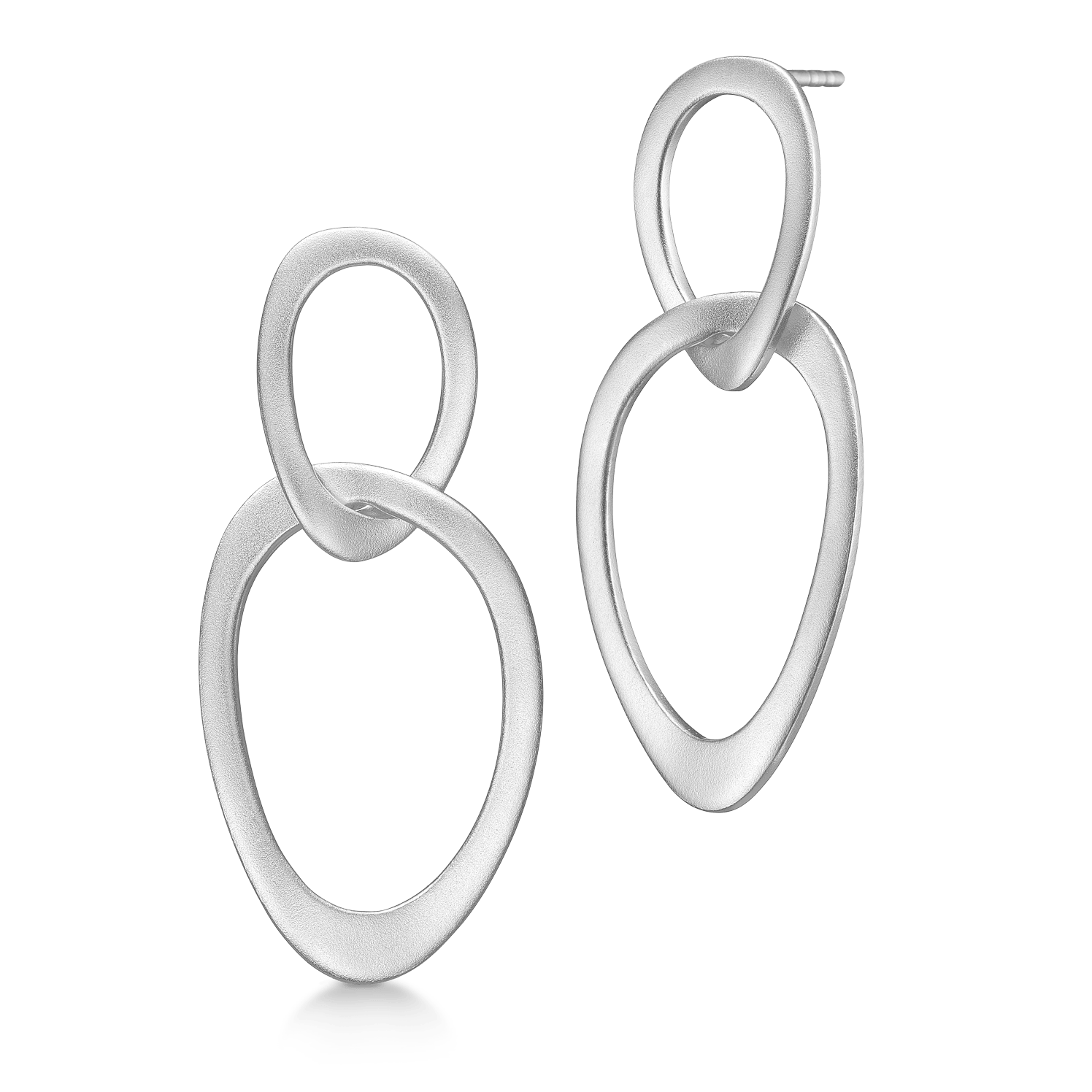 Smukke ørestikkere i et klassisk, organisk design med to led. Den organiske form passer perfekt på øret, og leddene sidder sammen så de ikke vender og drejer. Måler 36,2 x 16,5 mm