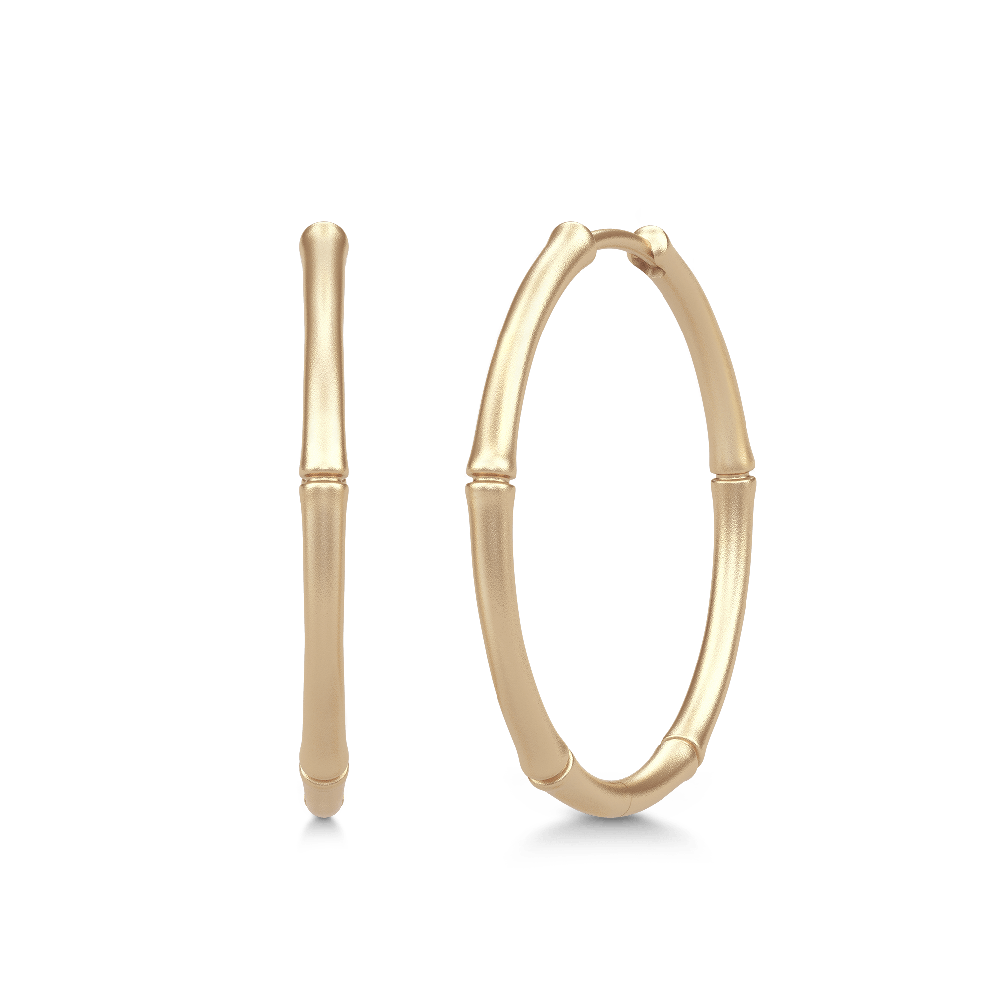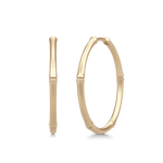 Disse elegante hoops i 14 karat guld er skabt med et ønske om at hylde naturens skønhed. Designet drager inspiration fra bambus, og indfanger hermed den perfekte balance mellem feminint og råt. Denne style kan bæres alene eller kombineret med de resterende hoops fra vores Bamboo kollektion for et unikt udtryk. Øreringen måler 27.6 x 2.2 mm.