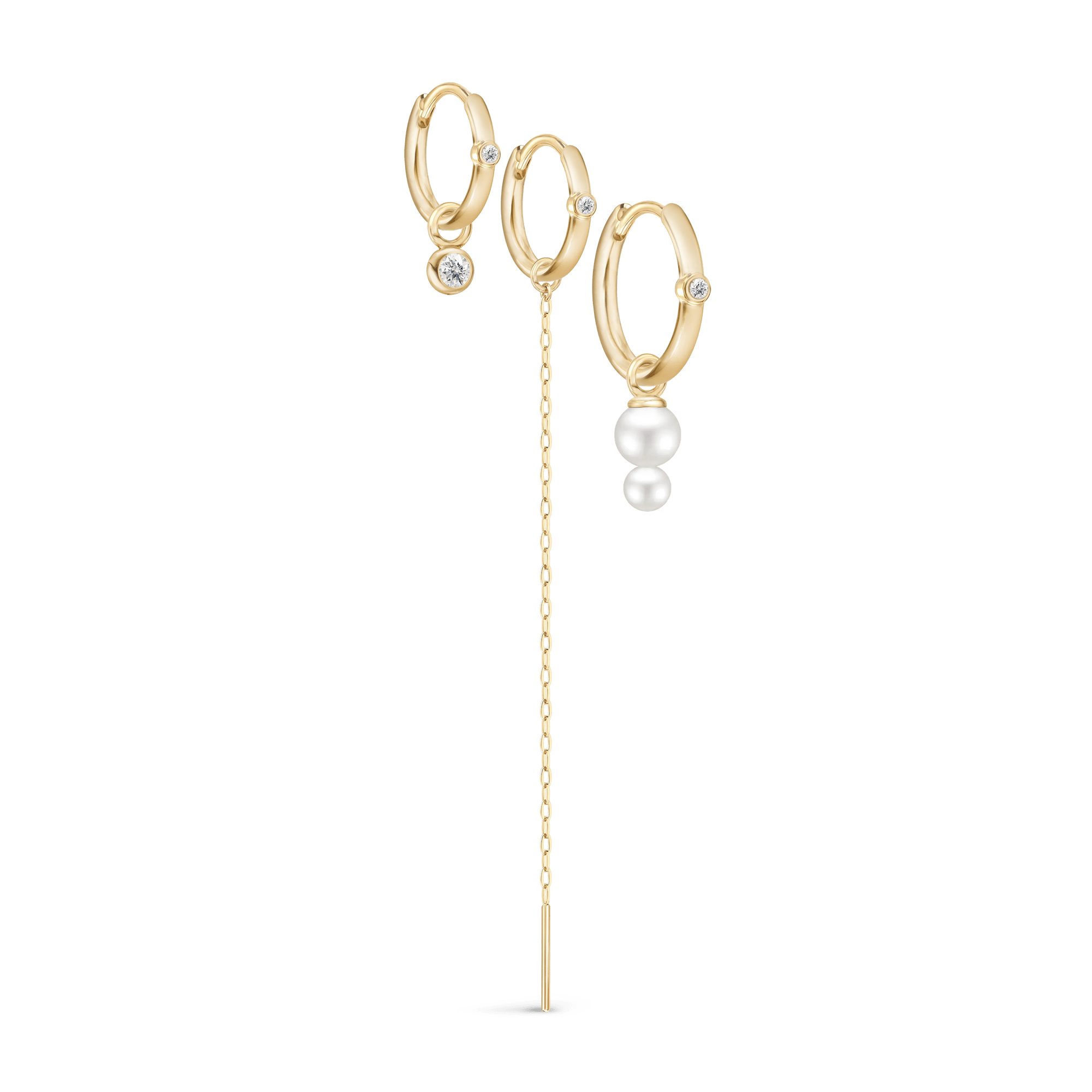 Denne skønne kombination af vores Purity Medium Hoop og Eden Ear Pendant, Purity Mini Hoop og Purity Chain Ear Pendant samt Purity Mini Hoop og Purity Ear Pendant skaber et perfekt og fortryllende look, der kan bruges til enhver lejlighed. Produceret i 100% recycled 14 karat guld og prydet med Top Wesselton diamanter og ferskvandsperler, udstråler dette smykkesæt elegance og bæredygtighed. Smykkerne kan også bæres og købes individuelt, hvilket åbner op for mange muligheder. Gå på opdagelse i vores Eden kollektion for at finde andre looks og kombinationer. Dette look består af tre hoops og tre ear pendants.
