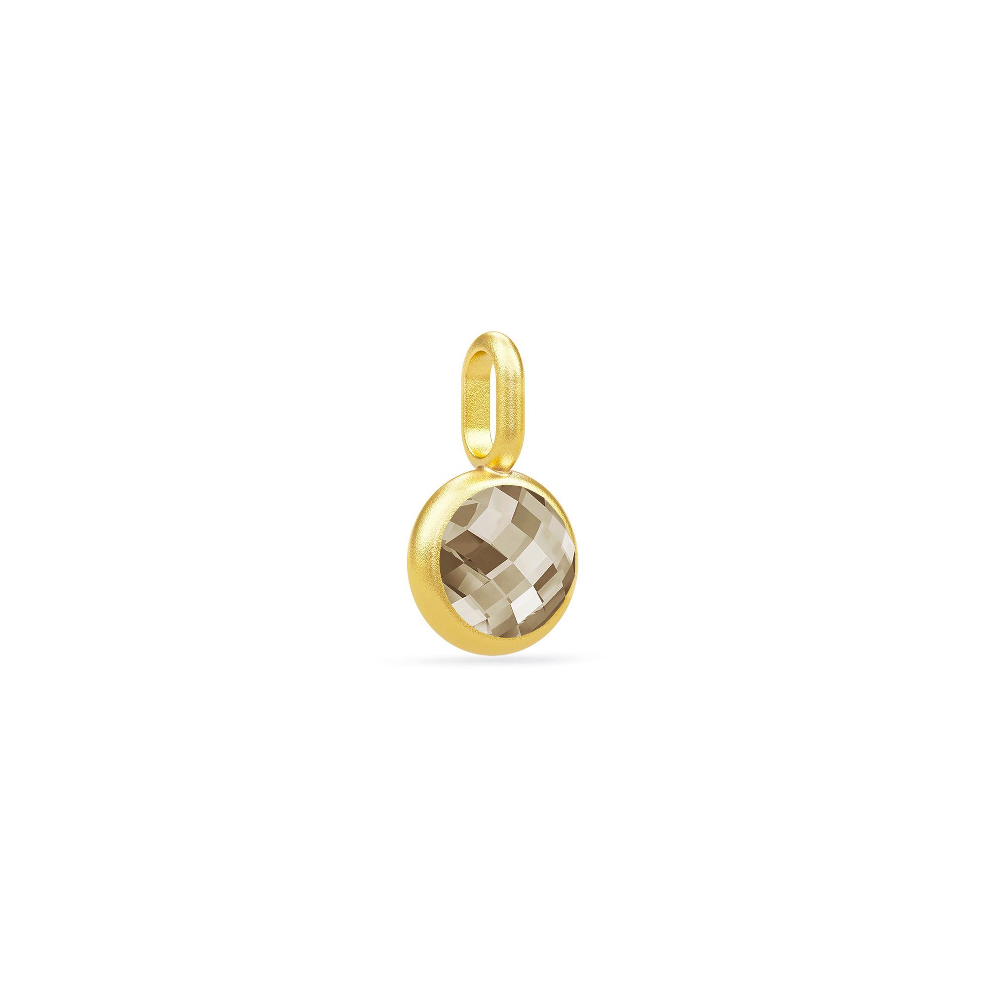 Vedhæng fra Julie Sandlaus Conscious kollektion. Produceret i recycled 22 karat forgyldt 925 sterling sølv med rund facet slebet Smokey Crystal. Vedhænget måler 13 x 7,5 mm. Smykkerne fra Conscious collection er produceret ud fra et ønske om at optimere vores ressourser og undgå spild, med smukke overskydende sten og perler fra vores skattekiste på fabrikken. Øreringene fås derfor kun i et begrænset antal og så længe lager haves.