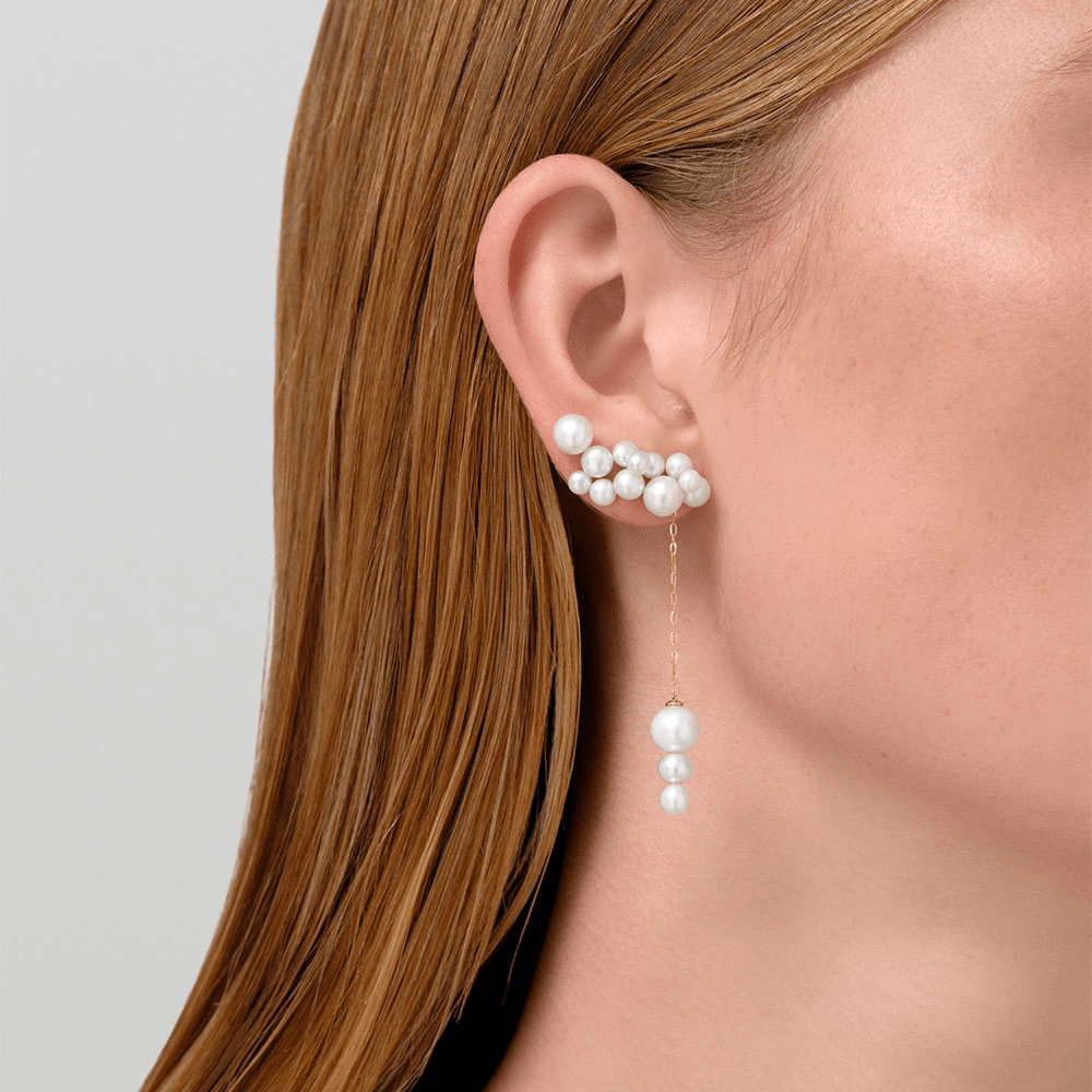 Vores Esther Earstud er en delikat single earstud med tre smukke, hvide ferskvandsperler i varierende størrelser. Dette elegante cluster-design er produceret i 100% recycled 14 karat guld. Ørestikken er perfekt til at kombinere med andre Julie Sandlau ørestikker. Gå på opdagelse i vores Eden kollektion og find ørevedhæng, der kan matches med vores Esther Earstud og andre matchende halskæder, armbånd og vedhæng.