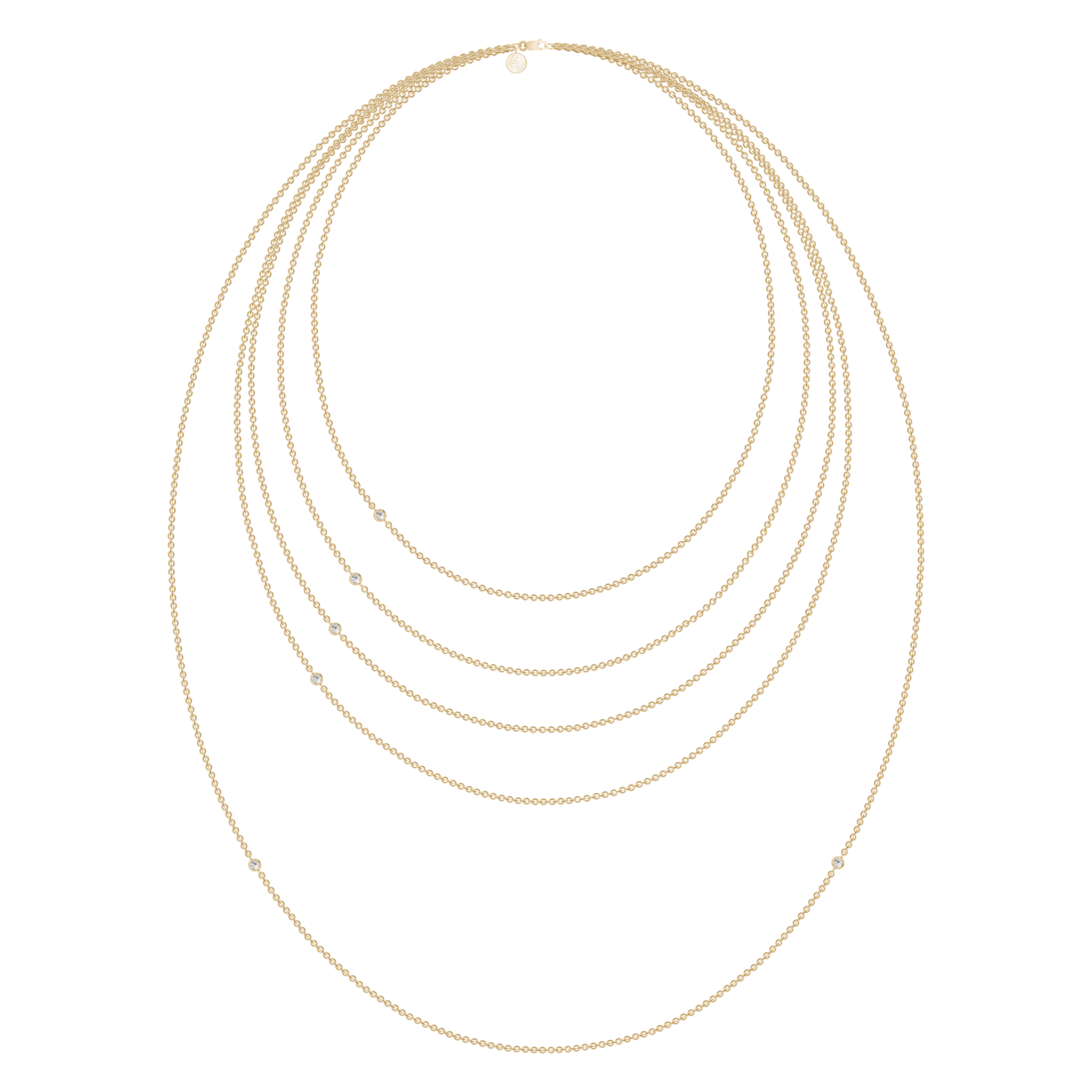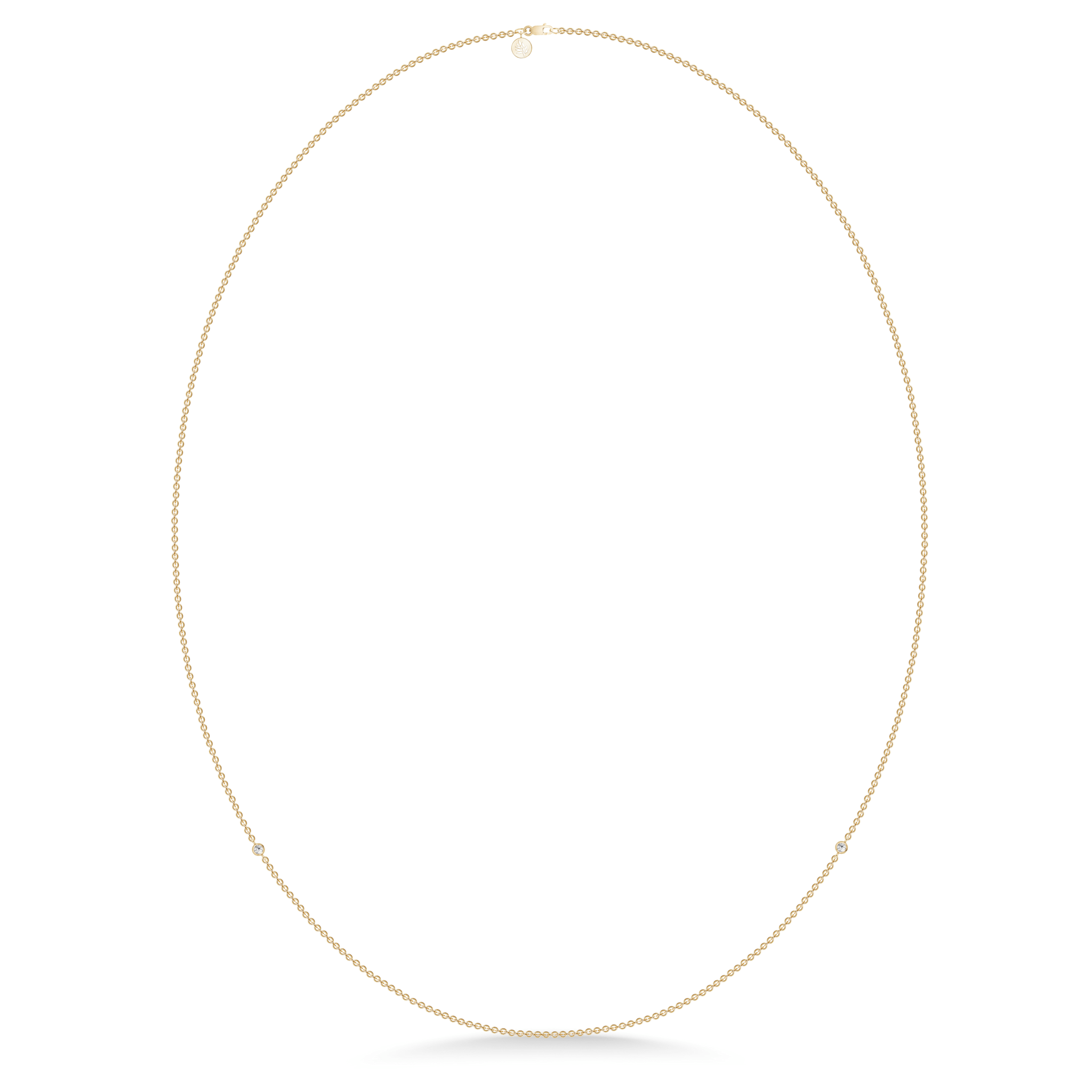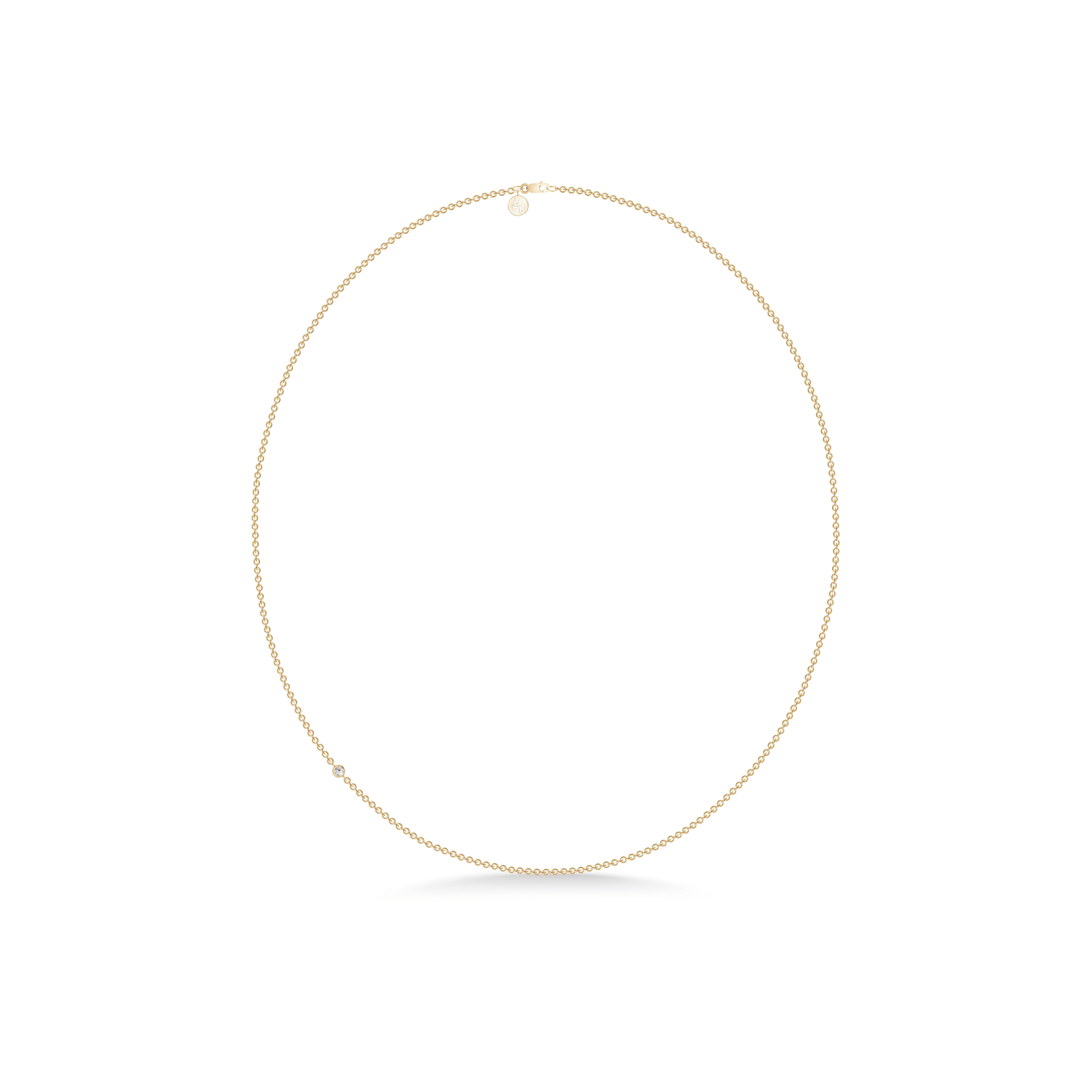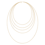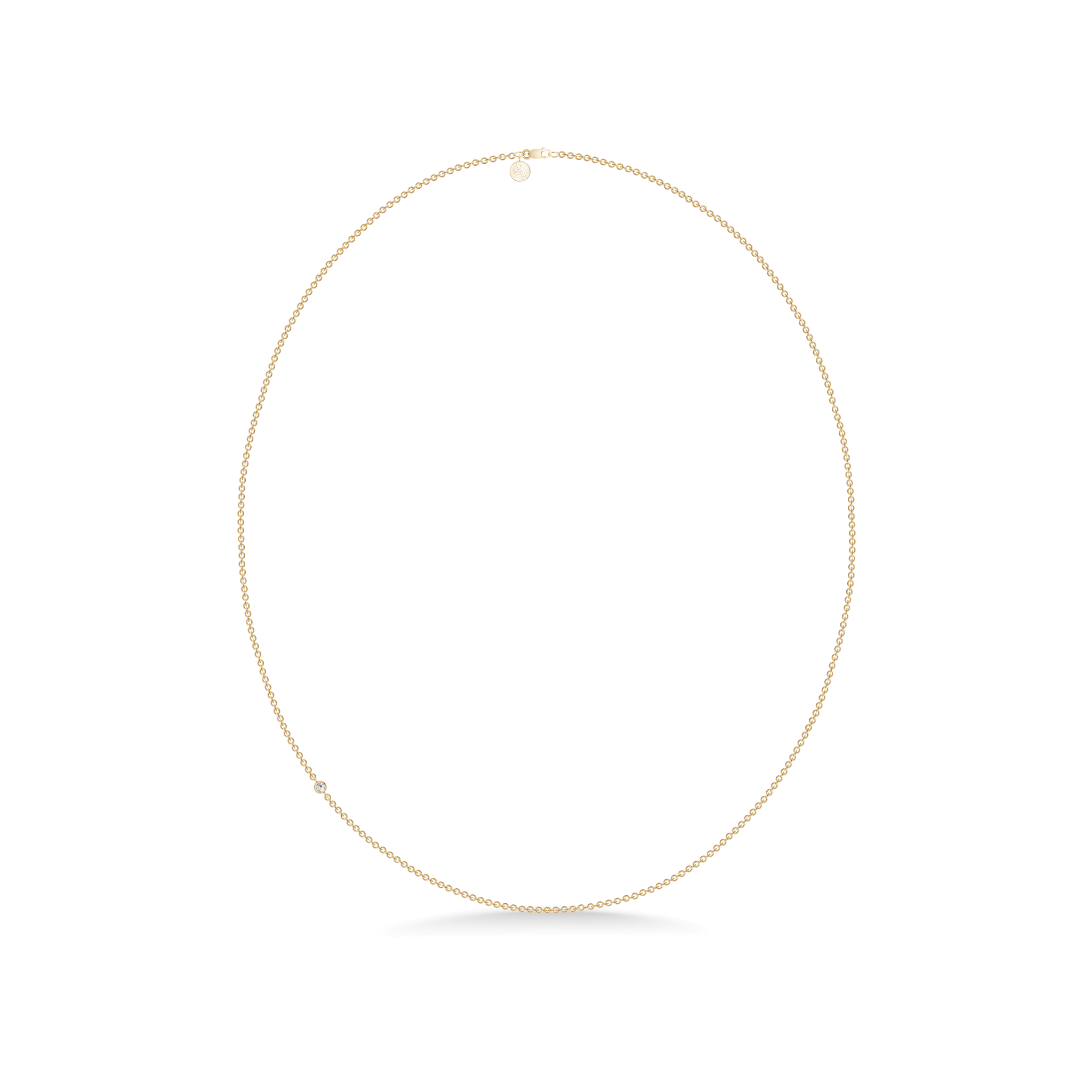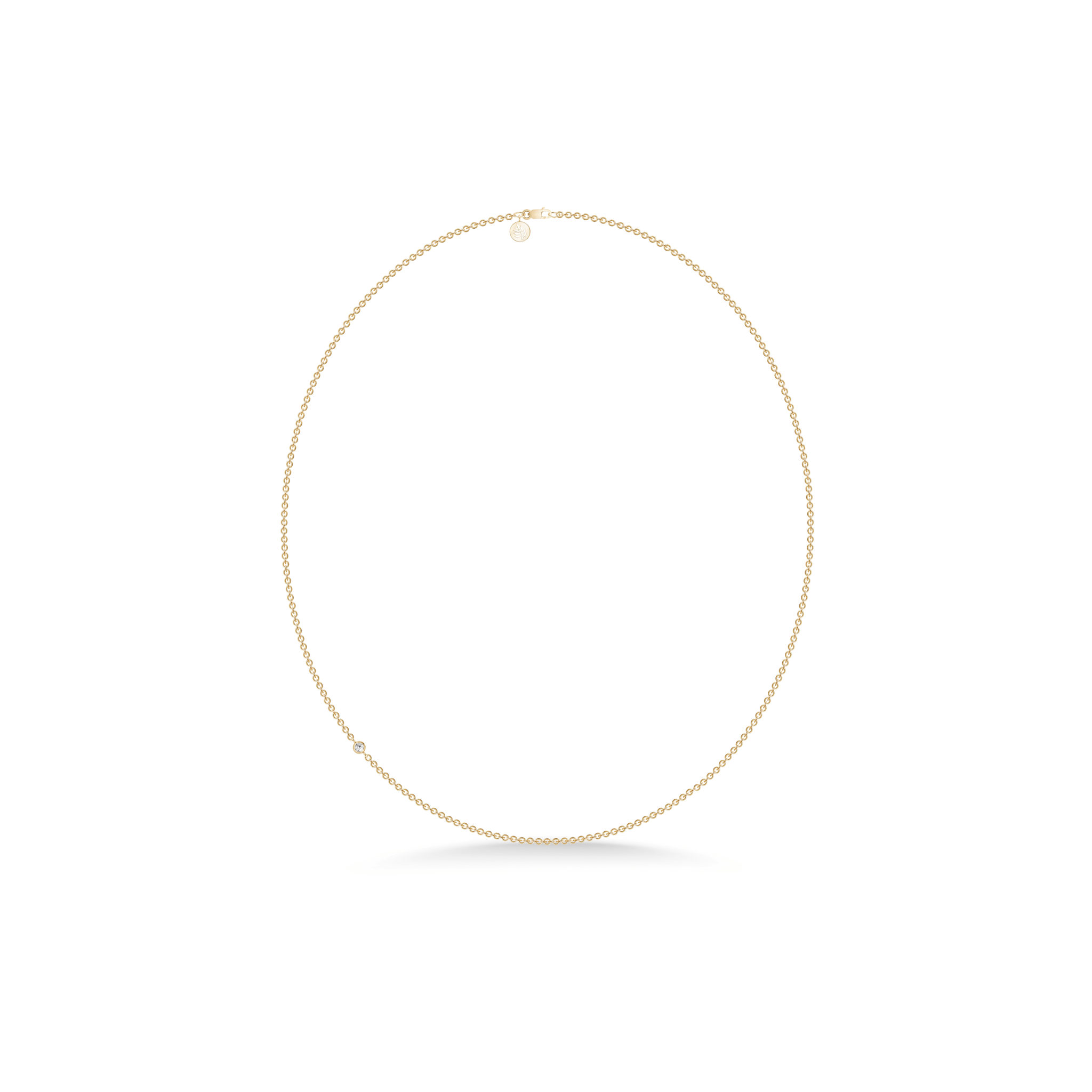 Halskæde i 22 karat forgyldt 925 sterlingsølv med facetslebne kubiske zirkoniaer. Halskæderne fås i følgende længder 40 cm, 45 cm, 50 cm, 60 cm og 80 cm. Længde 40 cm til 60 cm er med 1 kubisk zirkonia. Længde 80 cm er med 2 kubiske zirkoniaer.