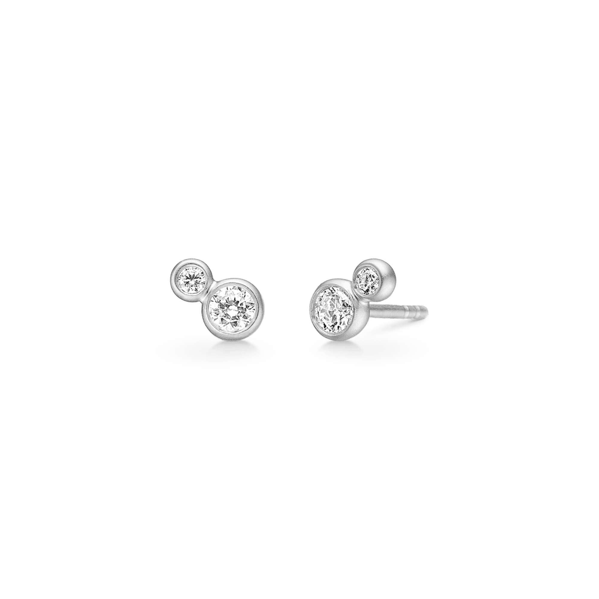 Enkle og feminine ørestikker fra Julie Sandlau's kollektion, Fina. Øreringene er håndlavet i satinrhodineret 925 sterlingsølv med to klare kubiske zirkoner der måler hhv. 1,5 og 2,5 mm. De fine små ørestikker passer perfekt sammen med Fina Single Butterfly der giver et edgy look til de enkle stikker.
