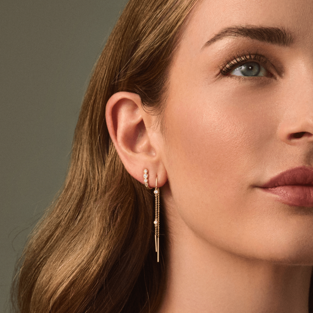 En elegant kombination af vores Grace Chain earrings og Grace Curve earstuds. Denne kombination er lavet af recycled 22k forgyldt 925 Sterling sølv.