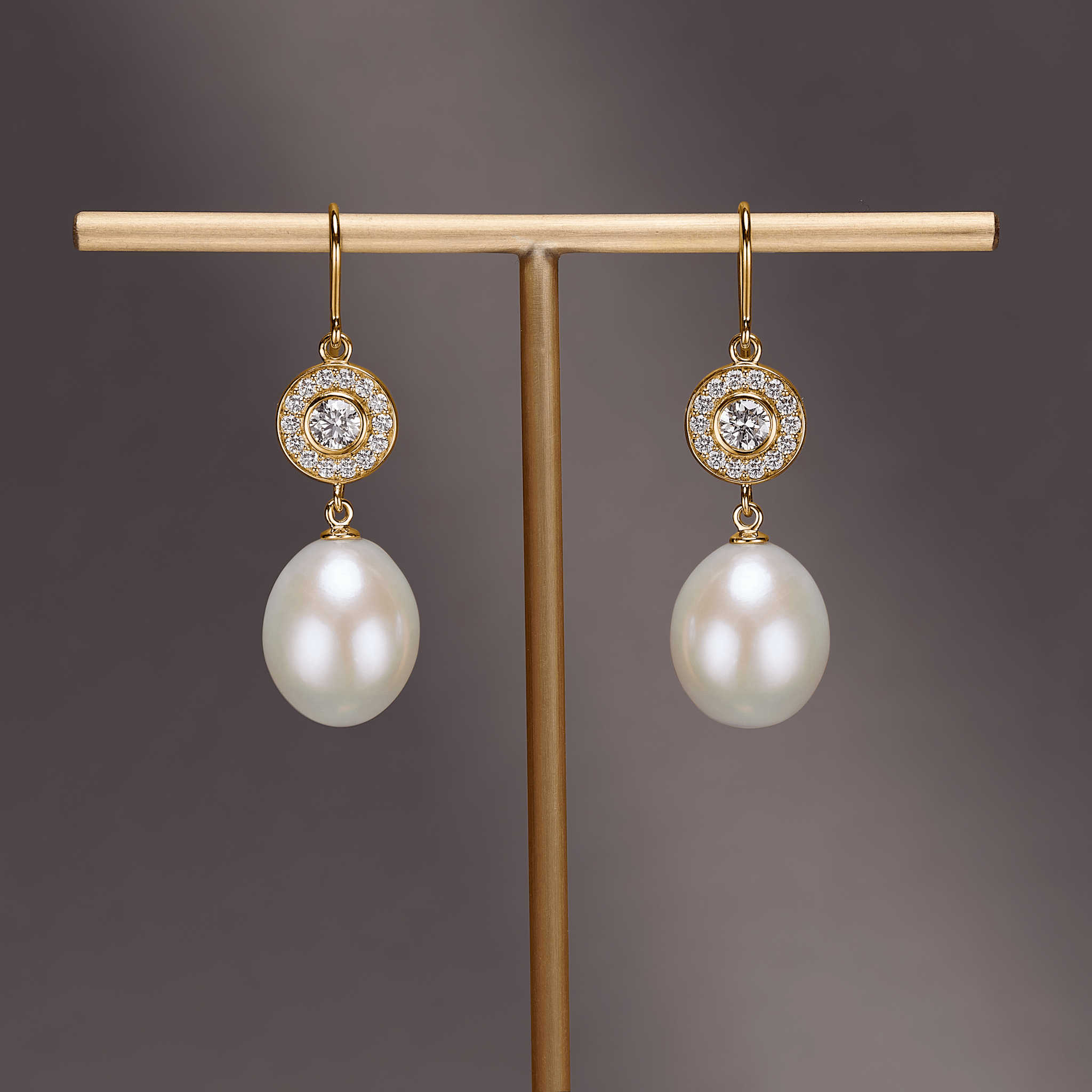 18 kt guld fremstillet af genanvendte metaller. Hver ørering er indfattet med brillantslebne I/SI og F-G/VS diamanter med en samlet carat på 0,88 ct. samt to aftagelige perledråber for et let skiftende udtryk. Alle materialer er etisk fremskaffede og håndsat for varig glans. Øreringen er udformet med fransk krog og al metal er udført i poleret 18 kt guld.