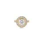 18kt guld fremstillet af genanvendte metaller med brillantslebne I/SI og F-G/VS diamanter. Center diamant I/SI 2.0 ct. omgivet af F-G/VS diamanter 16x 0,3 ct. og 31x 0,015ct. – alle etisk fremskaffede og håndsatte for varig glans.