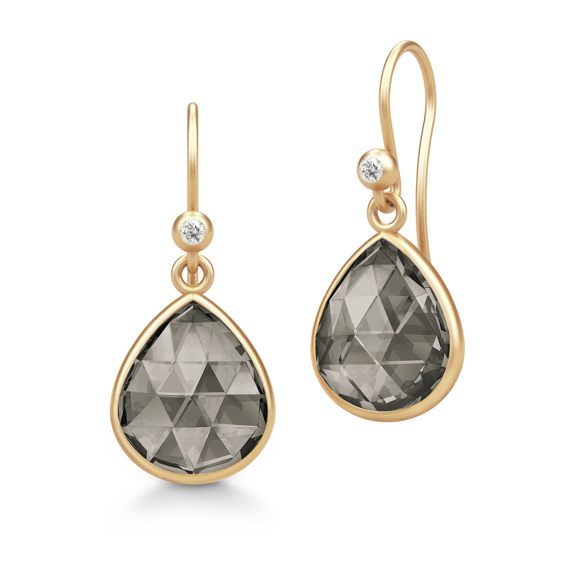 Vores Lea Earrings  er fremstillet i 22 karat forgyldt 925 sterling sølv. Disse øreringe kommer med smukke farvede pear briolette rose cut krystaller, der måler 10 mm x 12 mm. Derudover er øreringen dekoreret med cubiske zirkonia. Oplev også det matchede Lea Pendant, hvis du ønsker et sammenhængende udtryk.