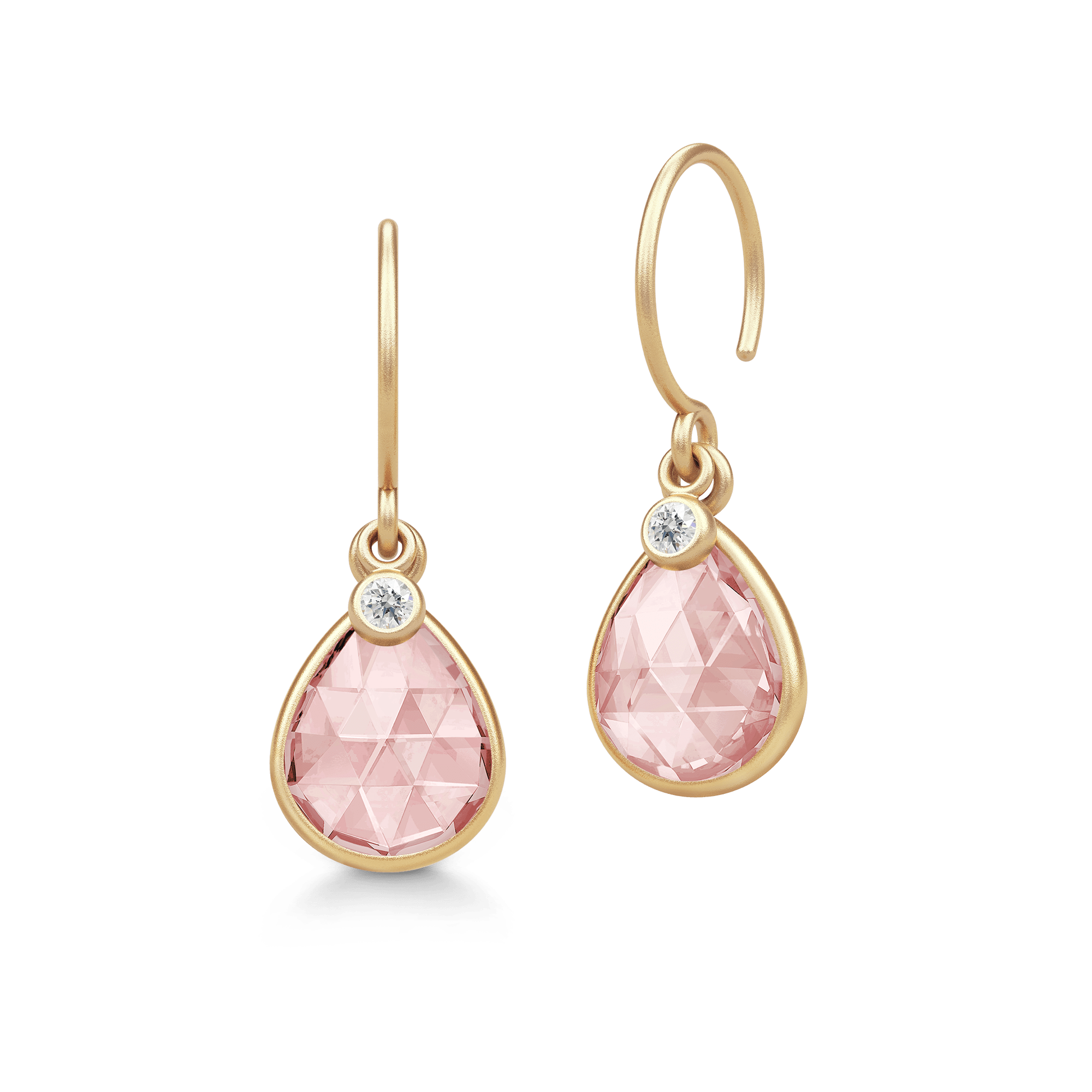 Vores elegante Leela Earrings er prydet med smukke pear briolette rose cut krystaller i enestående farver. Denne ørering er en mindre version af Lea designet, med en åben ørekrog. De er fremstillet i 22 karat forgyldt 925 sterling sølv. Øreringene er dekoreret med cubisiske zirkonia og facetter der gør dem funklende og bemærkelsesværdige. Du kan kombinere dem med flere øreringe fra vores andre populære kollektioner.