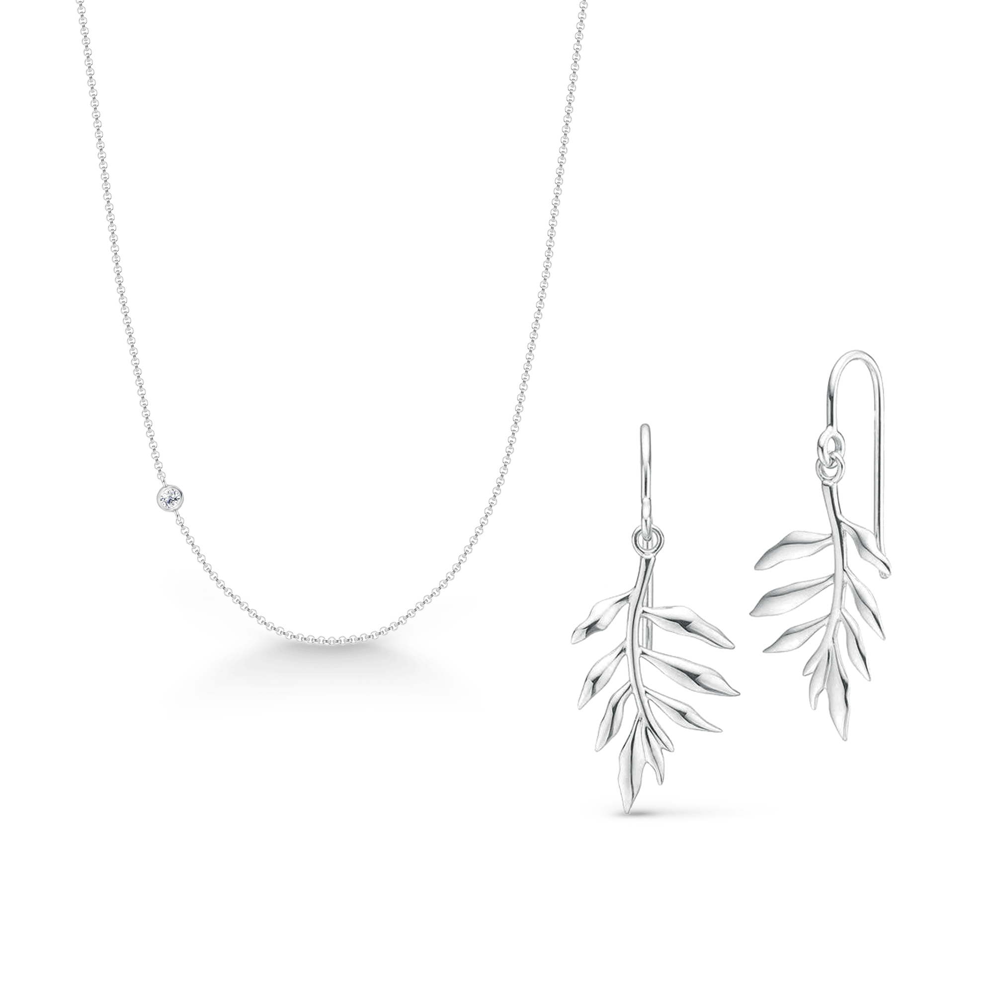 Legacy og Tree of Life sættet indeholder Legacy Necklace i valgfri størrelse samt Tree of Life Earrings - et delikat sæt i 18 karat hvidguld.