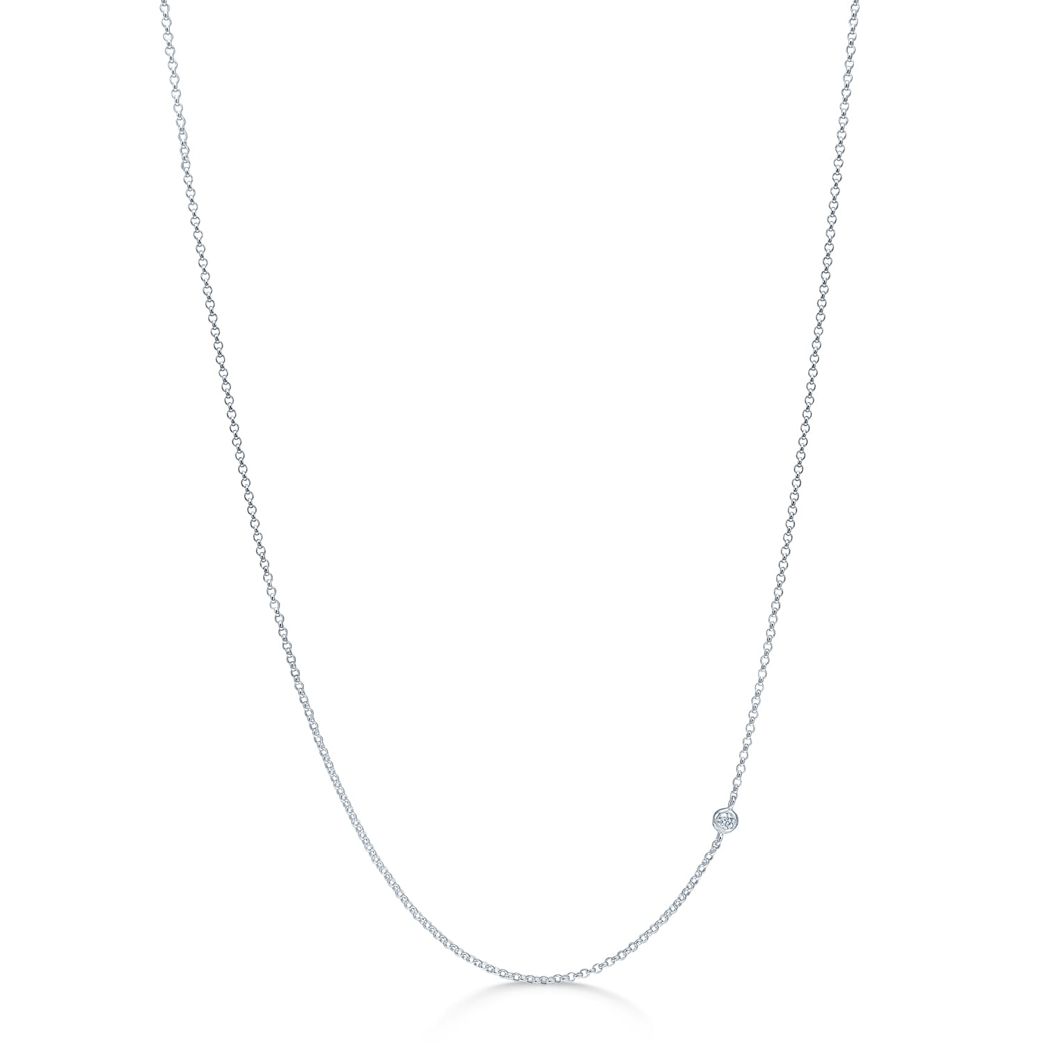 Fine Jewelry kollektionen udtrykker Julie Sandlaus eksklusive stil med et elegant, sofistikeret og tidløst design. Halskæde i 18 karat hvidguld forskønnet med en brillant sleben 0,02 karat Top Wesselton diamant. Halskæden måler 45 cm.