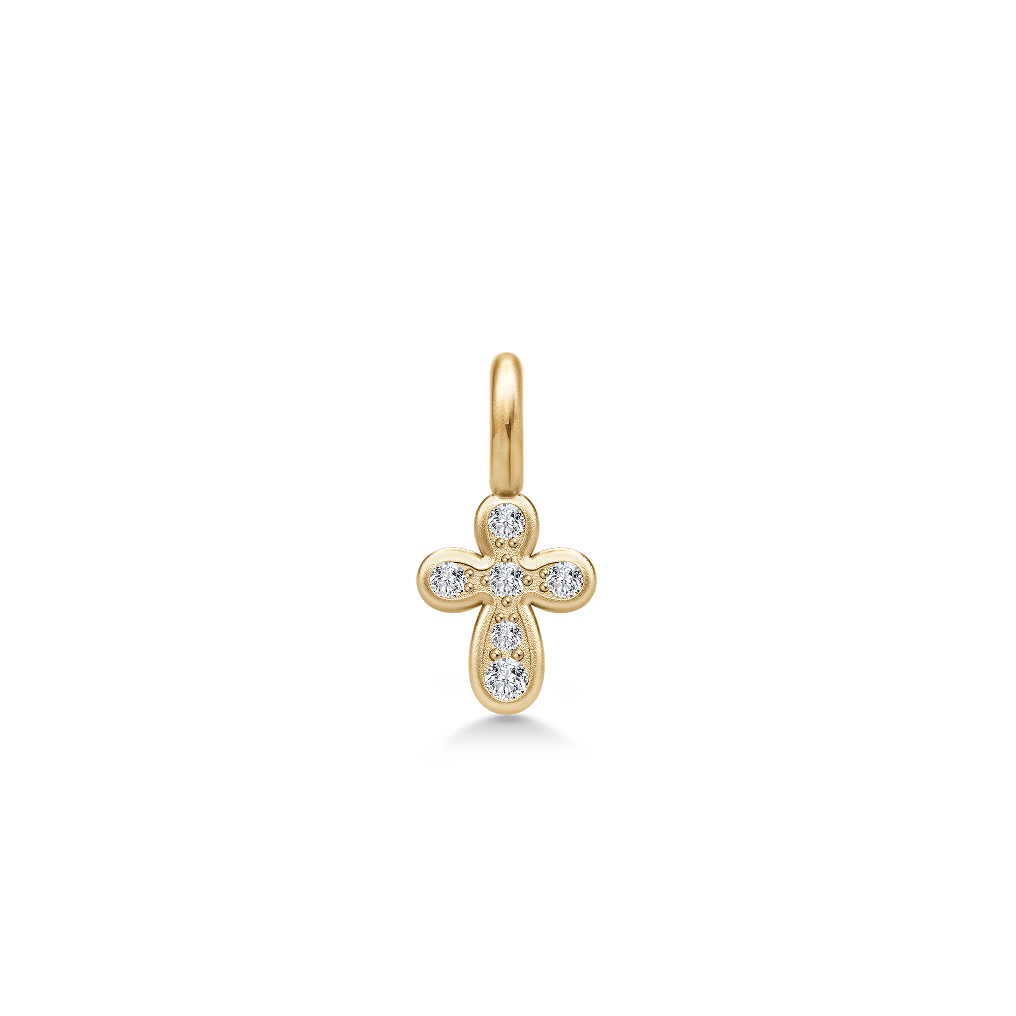 Vedhæng fra Life kollektionen i 22 karat forgyldt 925 sterlingsølv med facetslebne og klare kubiske zirkonia. Det lille kors er perfekt til gaven til dåben, konfirmationen eller i en hverdagskombination med andre Julie Sandlau vedhæng. Måler 14,9 mm.