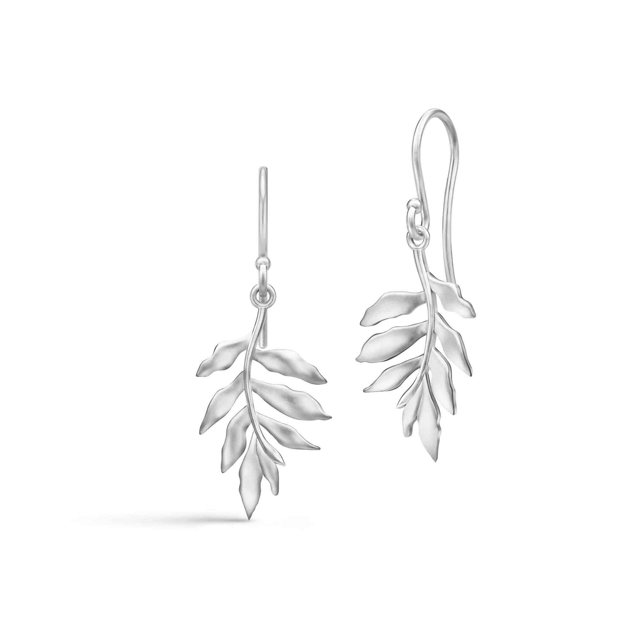 Classic øreringe med Julie Sandlaus signatur Tree of Life logo håndlavet i satinrhodineret 925 sterlingsølv med signaturblad. Øreringene måler 22,1mm x 12,7mm.
