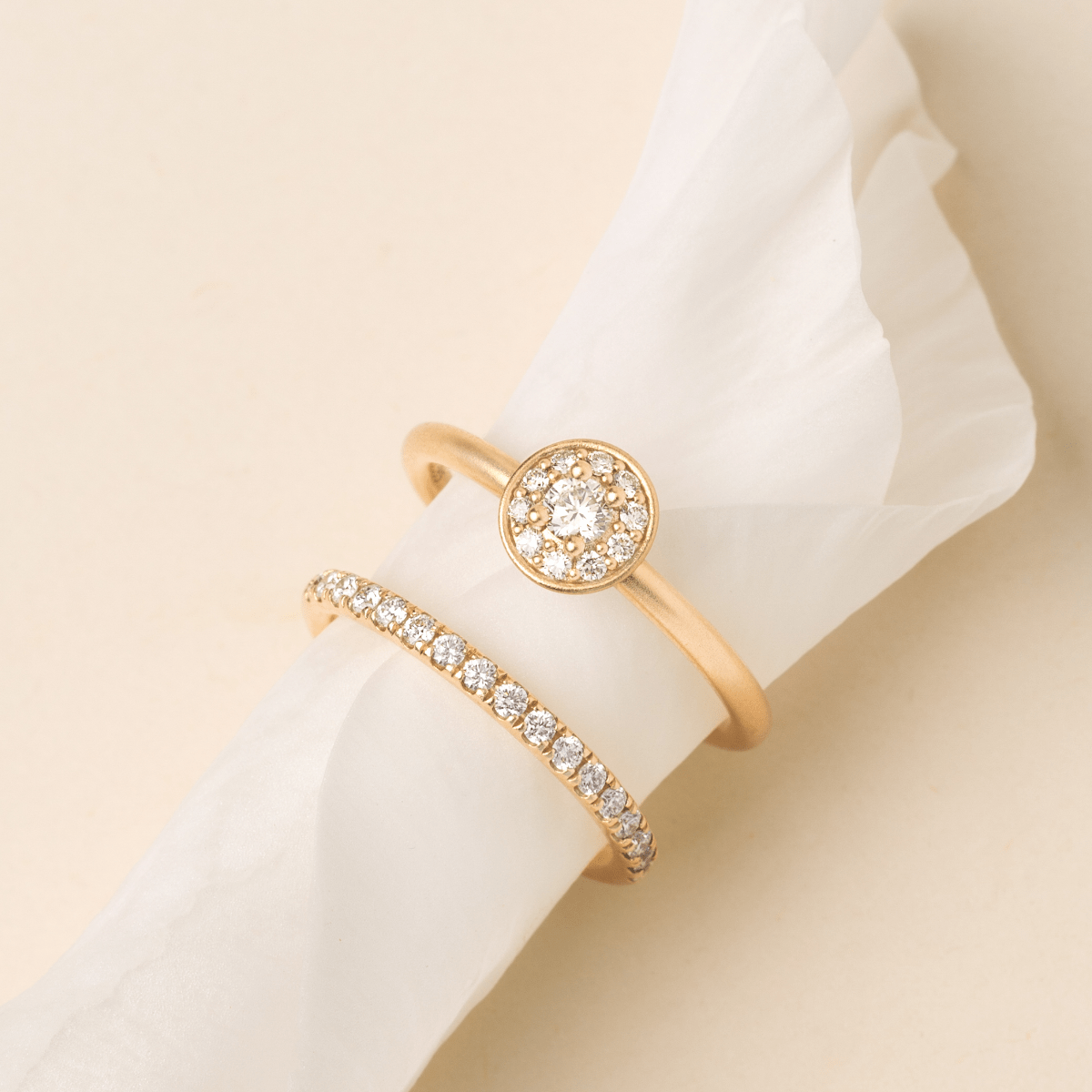 14kt guld fremstillet af genanvendt metal med etisk fremskaffede og håndsatte naturlige I/SI diamanter.