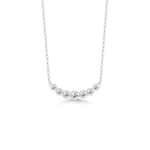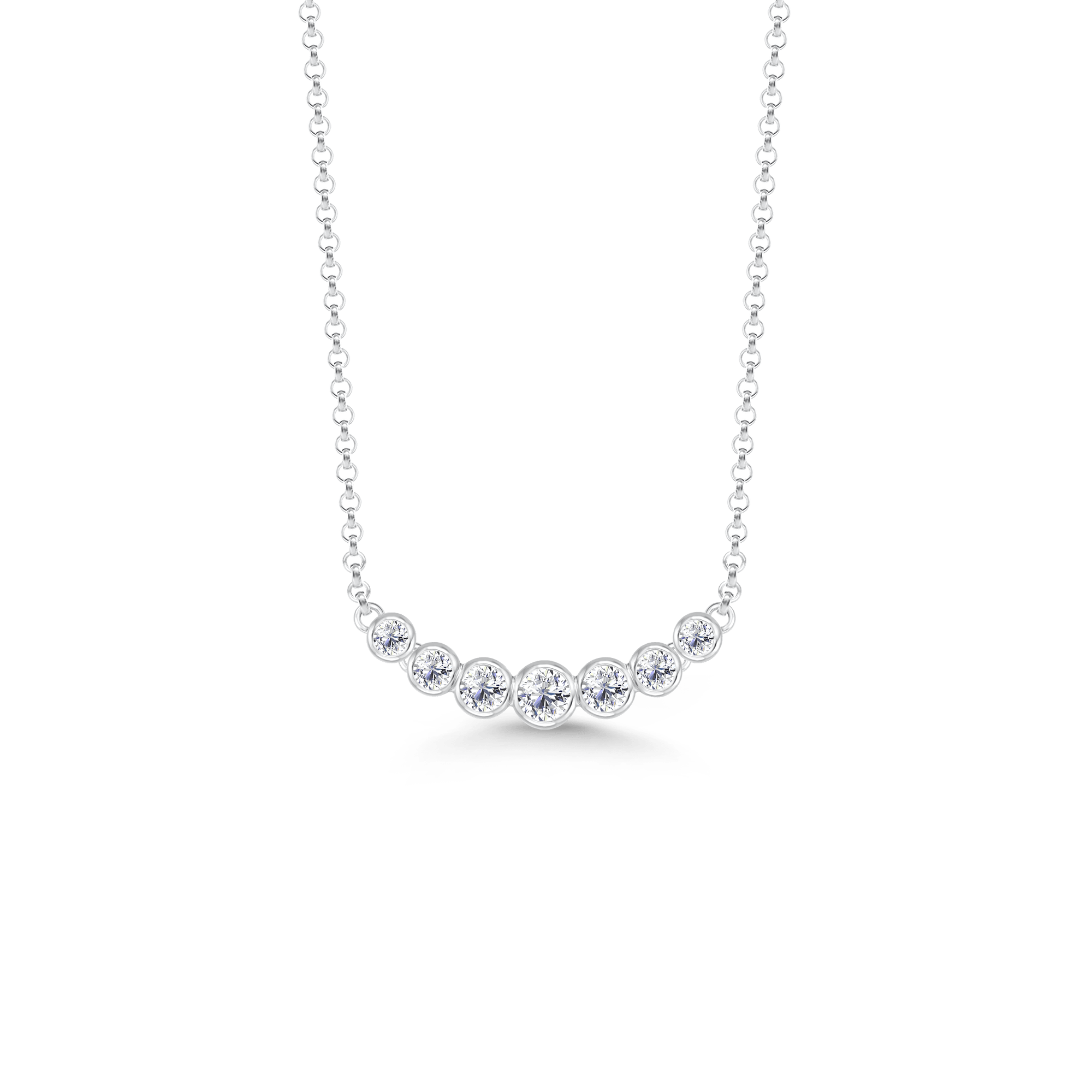 Denne Lumen halskæde præsenterer en stilren 42 cm kæde, usmykket med et ekstravagant vedhæng, hvor størrelsesgraduerede Top Wesselton diamanter danner en organisk og elegant silhuet. Denne halskæde er fattet med 0.29 carat diamanter sat i 100% genanvendt 18 karat guld, med den ikoniske Julie Sandlau satin finish. Vores Lumen halskæde repræsenterer sublimt håndværk og supplerer harmonisk de unikke designs fra Lumi kollektionen, hvilket gør denne kæde perfekt til styling.