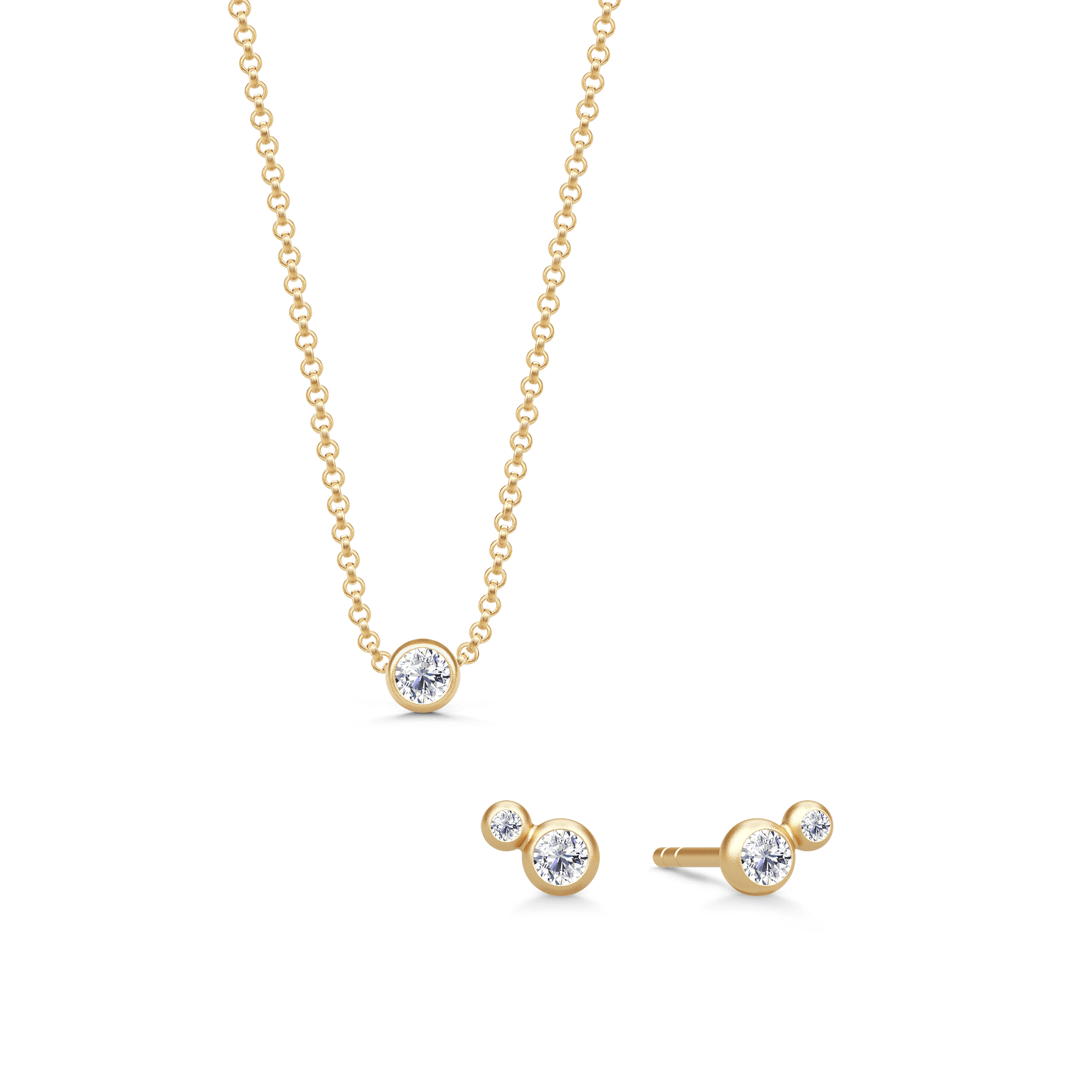 Luster og Fina sættet indeholder Luster Necklace i valgfri størrelse samt Fina Earstuds - et delikat sæt i 18 karat guld.