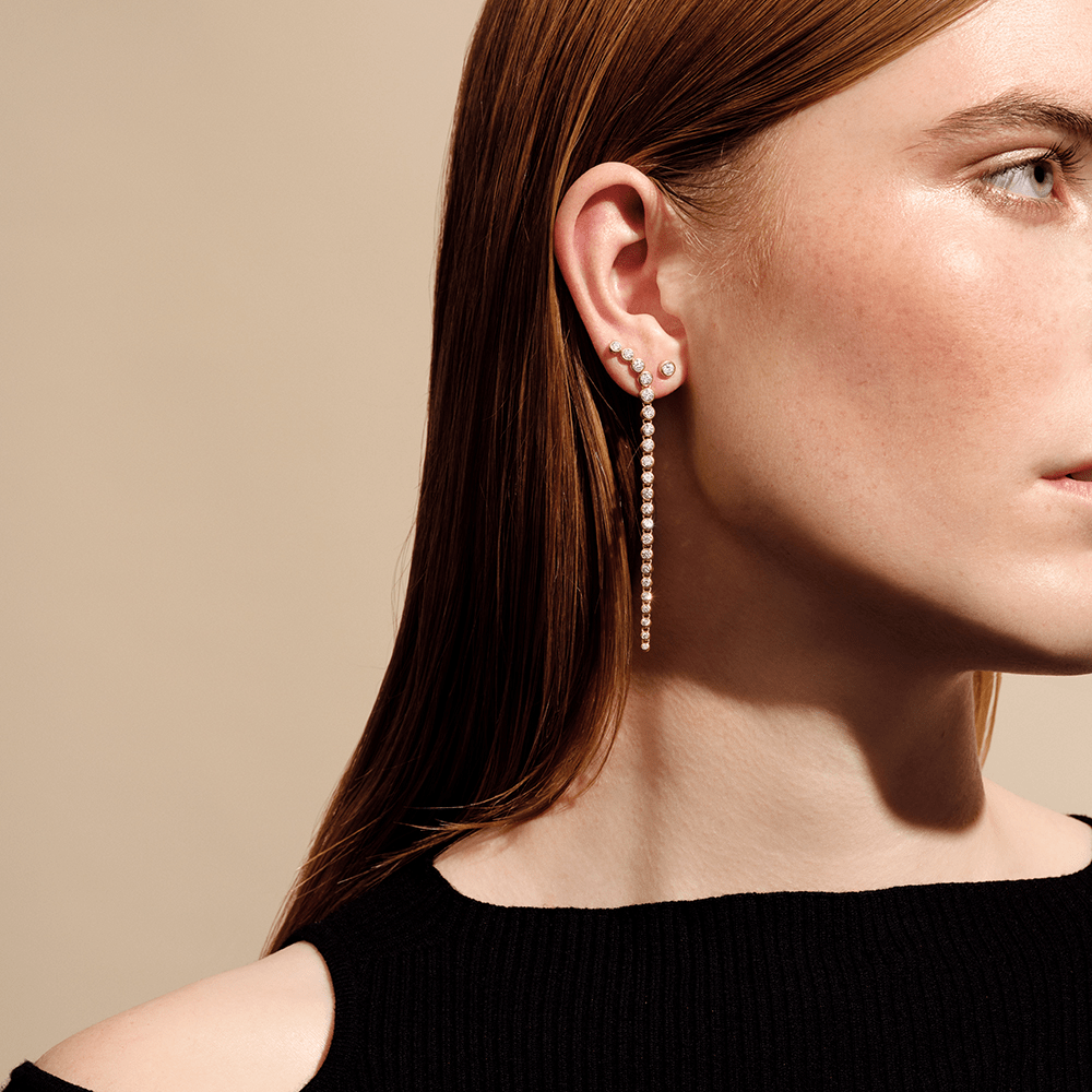 Disse øreringe er tilgængelige i 100% genanvendt 18-karat guld eller hvidguld og kan købes som et par eller enkeltvis