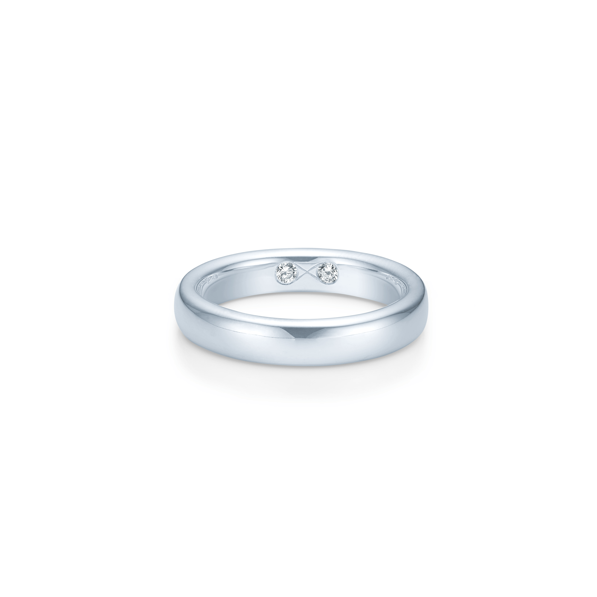 Til ham - klassisk vielsesring til ham med en flot poleret overflade samt Julie Sandlaus signatur Evighedstegn med to brillantslebne Top Wesselton diamanter inderst på ringskinnen. Ringen er lavet i 18 karat hvidguld med 0,06 carat Top Wesselton diamanter.