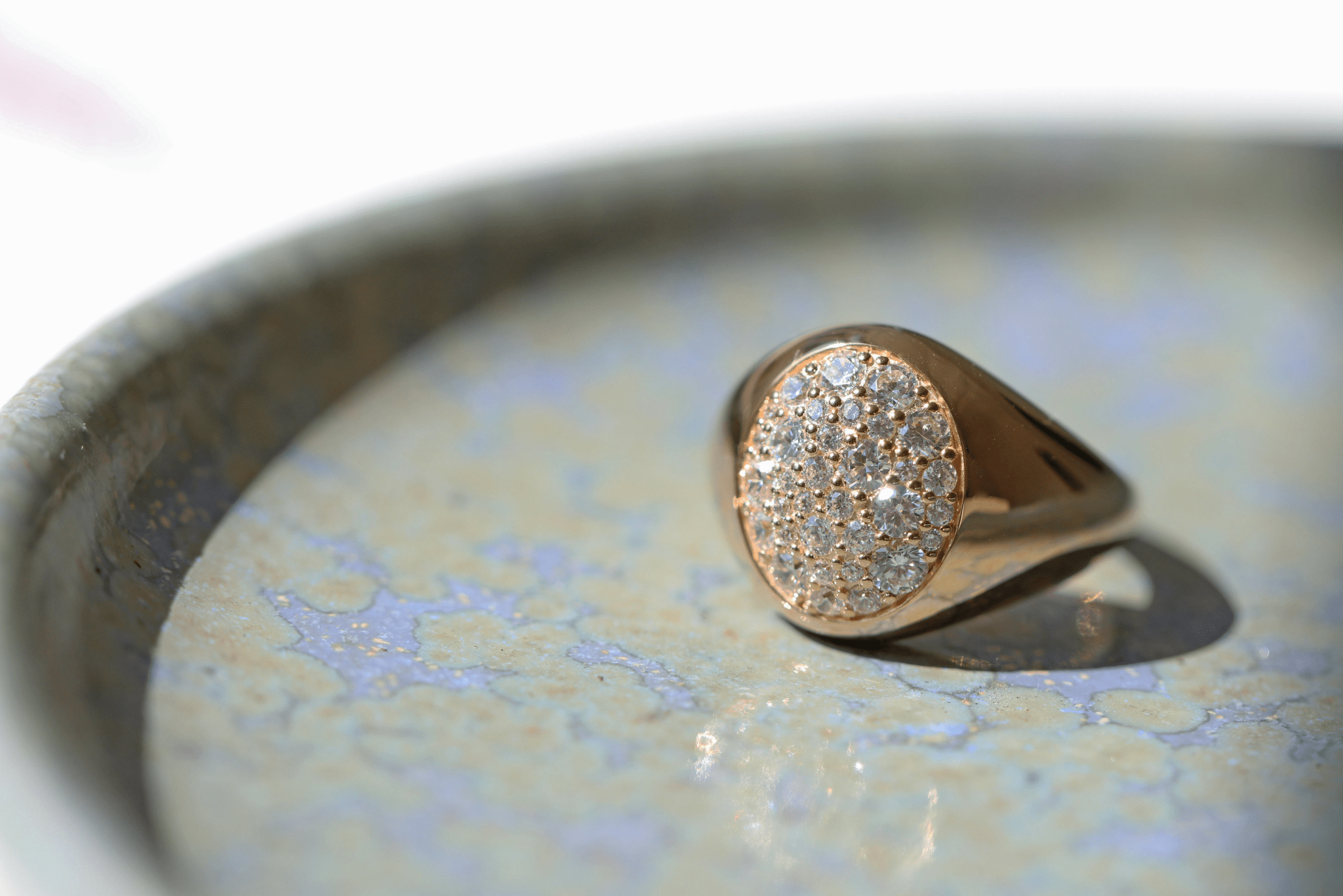 Overdådigt smuk pinky ring fra Julie Sandlau's Fine Jewelry kollektion håndlavet i 100% recycled 18 karat guld med de fineste brillantslebne Top Wesselton diamanter - i alt 0,63 carat. Ringen kan bestilles i str. 44-56.