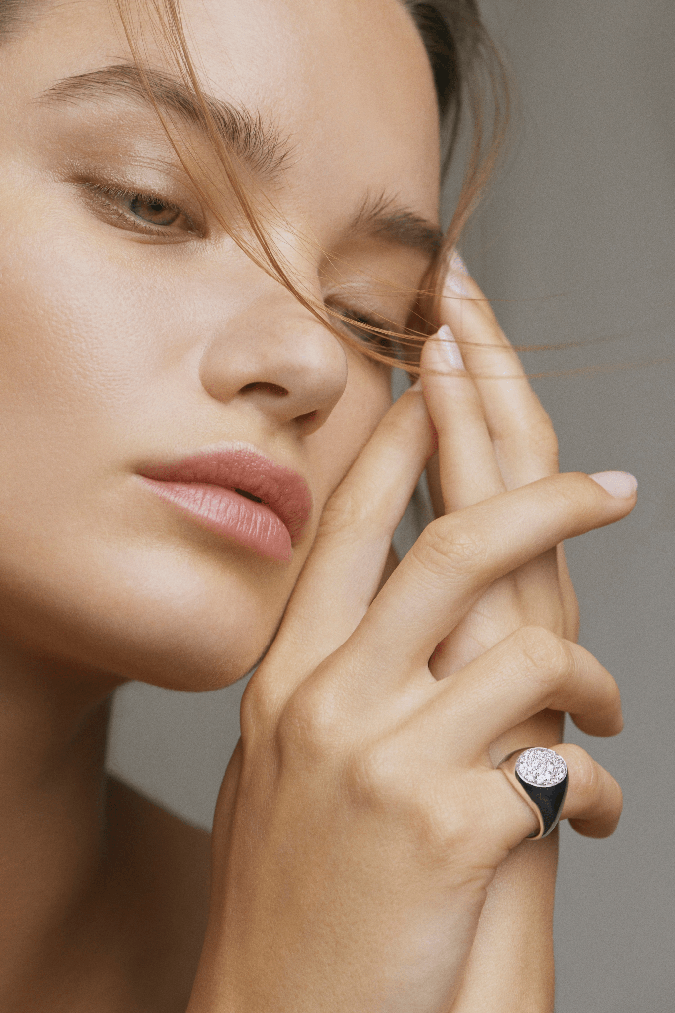 Overdådigt smuk pinky ring fra Julie Sandlau's Fine Jewelry kollektion håndlavet i 100% recycled 18 carat hvidguld med de fineste brillantslebne Top Wesselton diamanter - i alt 0,63 carat. Ringen kan bestilles i størrelse 44 til 56. Leveringstid 2-3 uger.