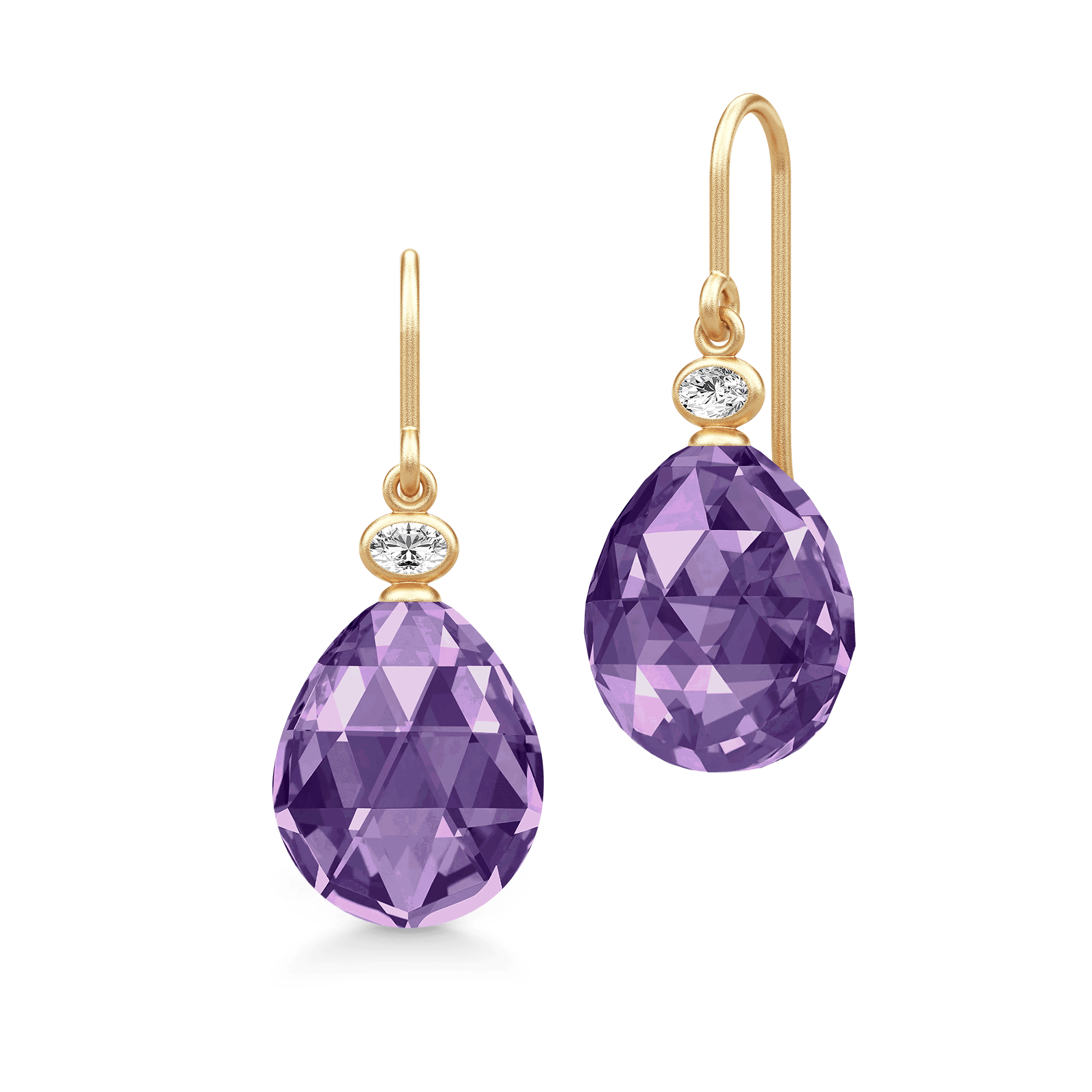 Hver ørering er prydet med en dråbeformet briolette med rose-cut og en ovalslibet hvid zirkonia – ansvarligt udvundet og håndsat med præcision.