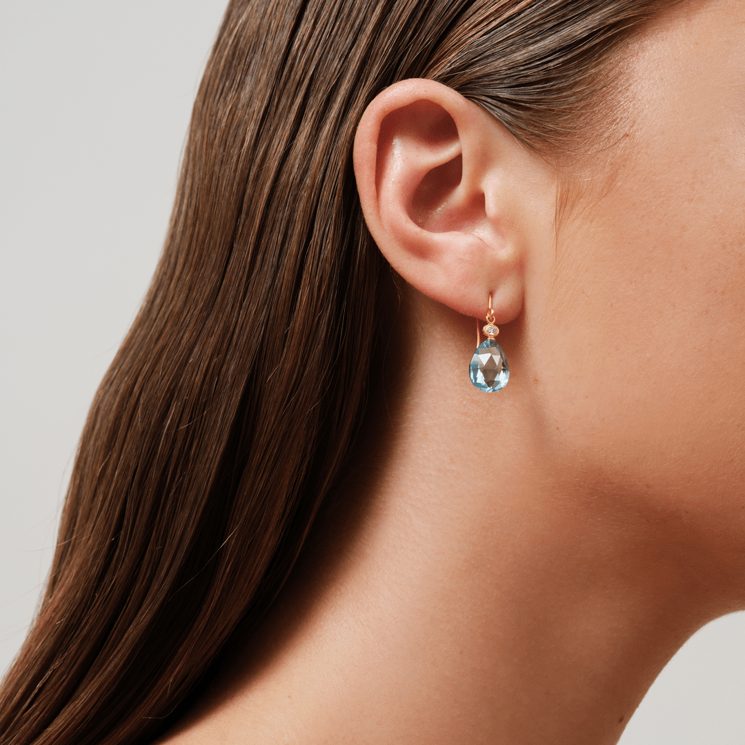 Hver ørering er prydet med en dråbeformet briolette med rose-cut og en ovalslibet hvid zirkonia – ansvarligt udvundet og håndsat med præcision.