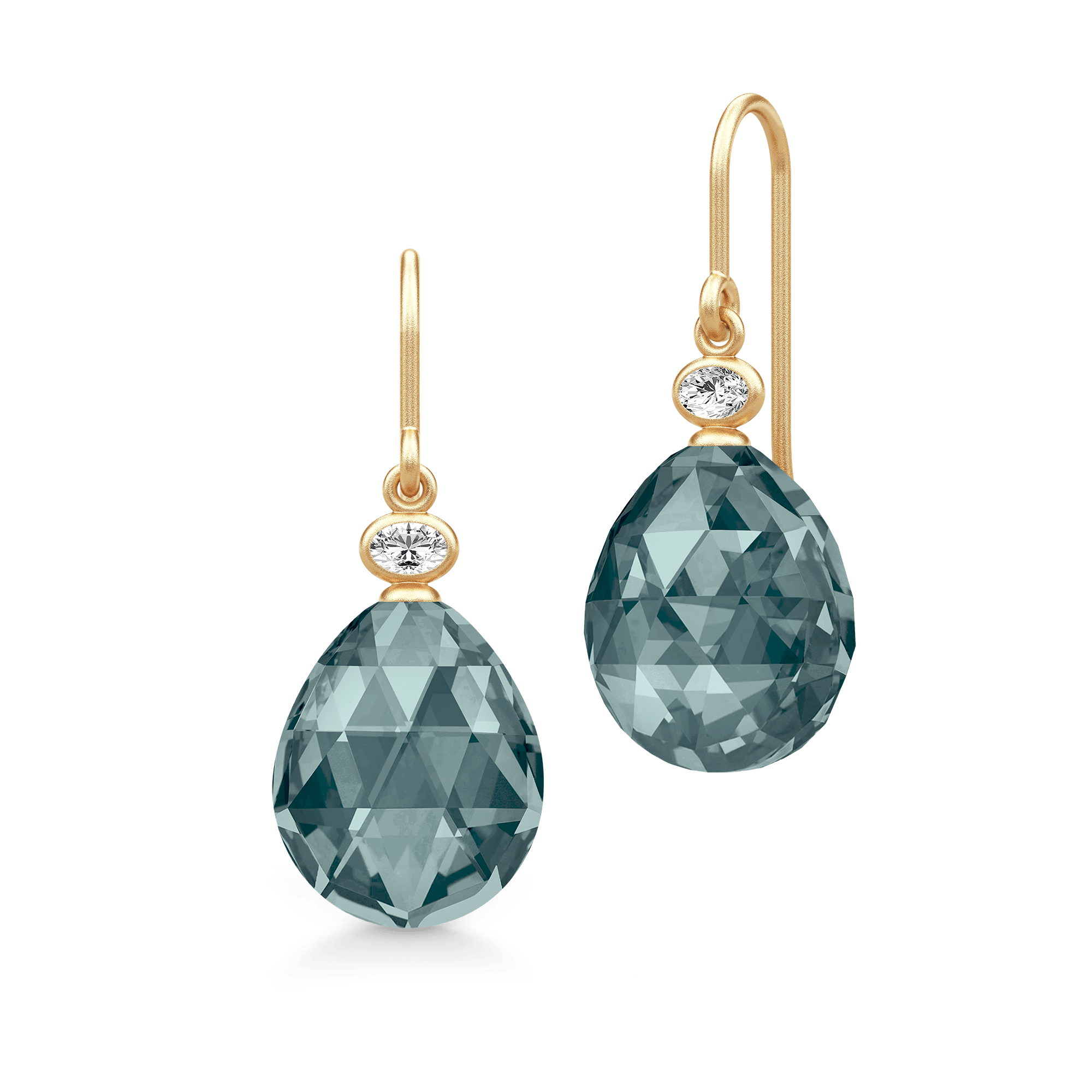 Hver ørering er prydet med en dråbeformet briolette med rose-cut og en ovalslibet hvid zirkonia – ansvarligt udvundet og håndsat med præcision.