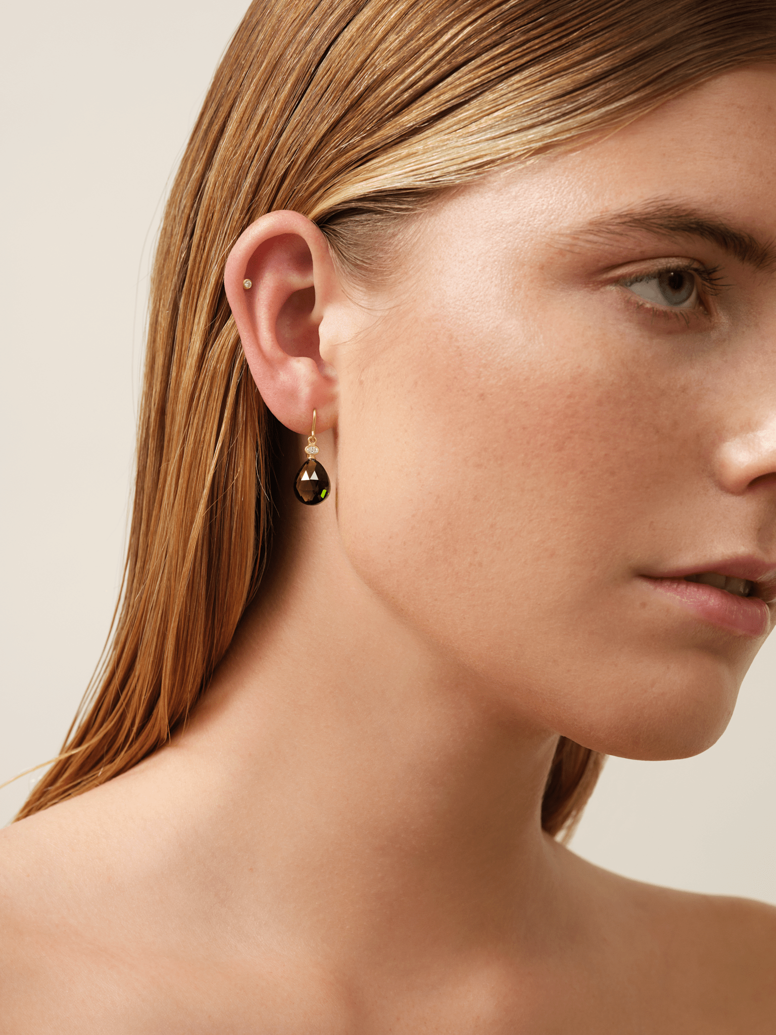 Hver ørering er prydet med en dråbeformet briolette med rose-cut og en ovalslibet hvid zirkonia – ansvarligt udvundet og håndsat med præcision.