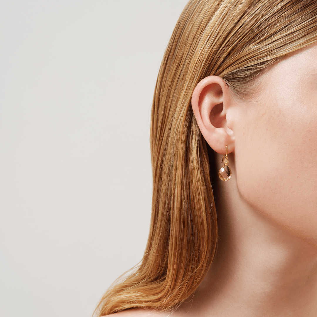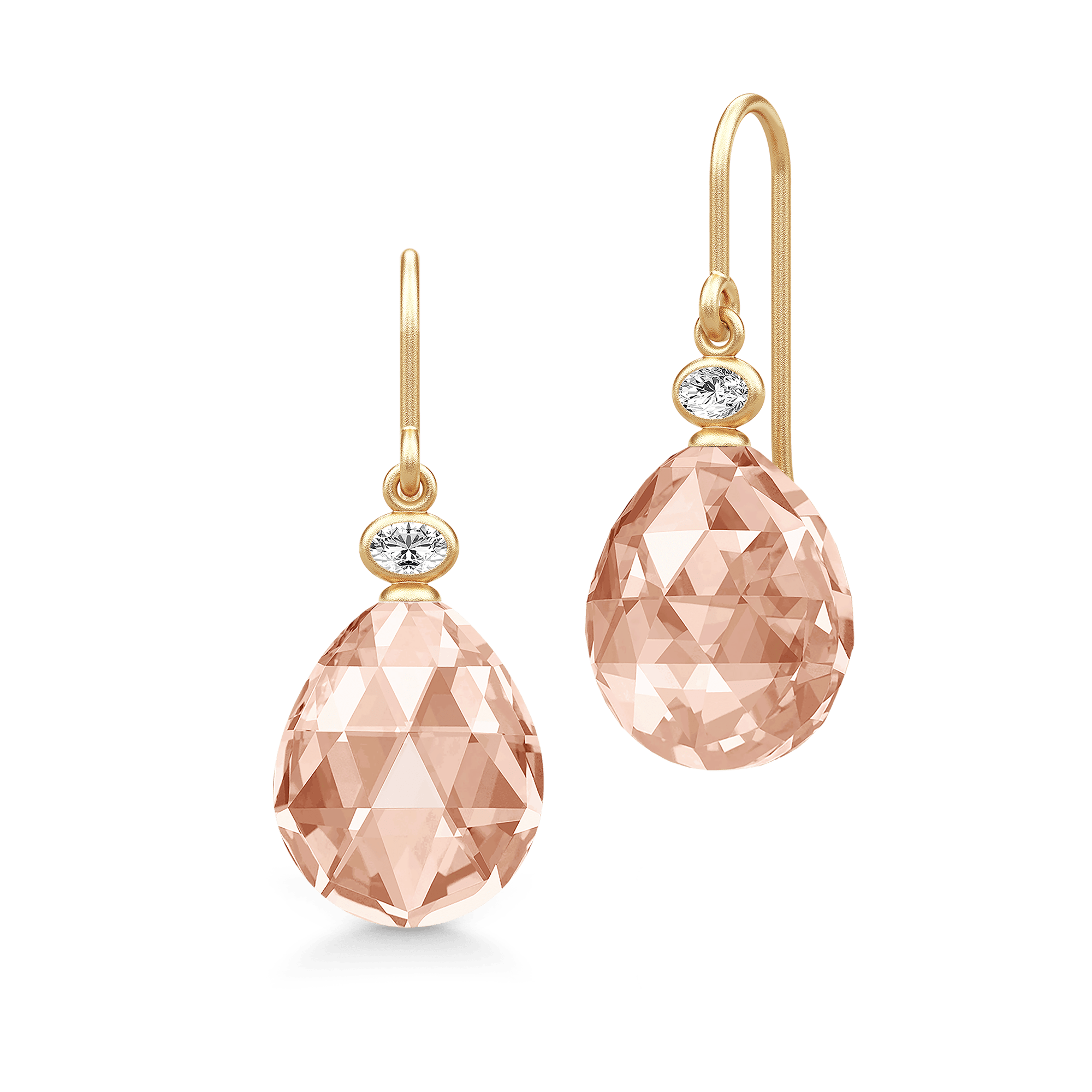 Hver ørering er prydet med en dråbeformet briolette med rose-cut og en ovalslibet hvid zirkonia – ansvarligt udvundet og håndsat med præcision.