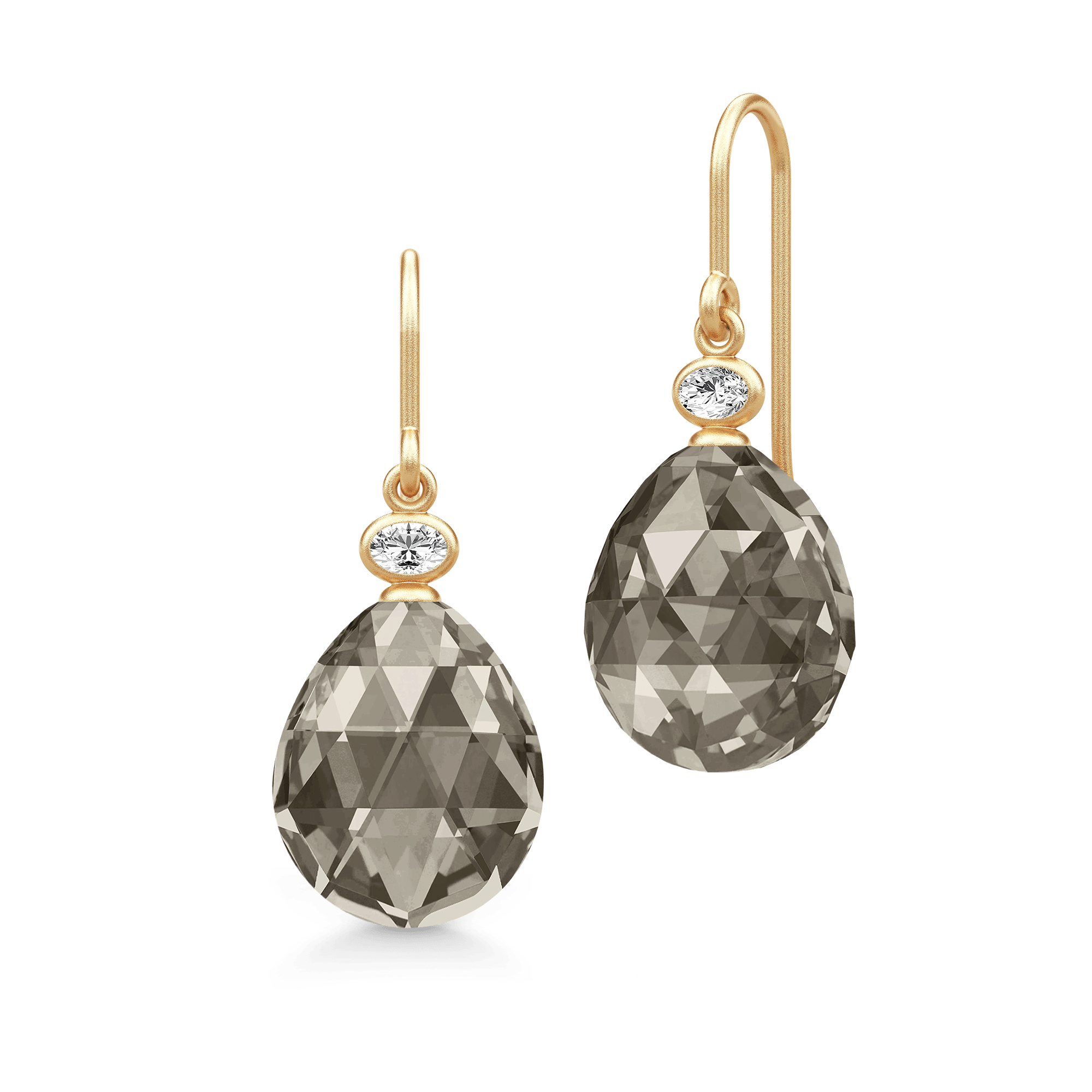 Hver ørering er prydet med en dråbeformet briolette med rose-cut og en ovalslibet hvid zirkonia – ansvarligt udvundet og håndsat med præcision.