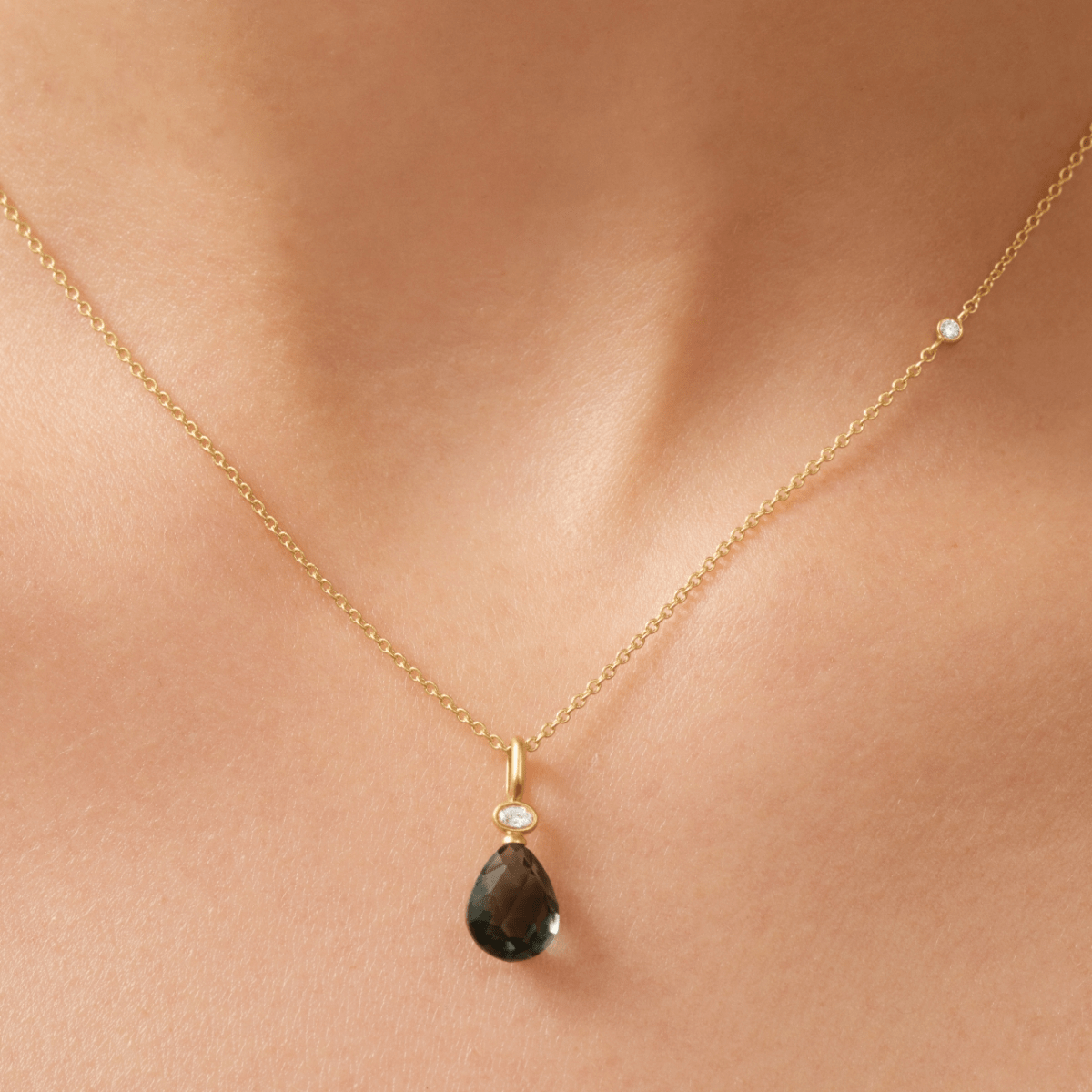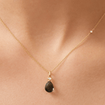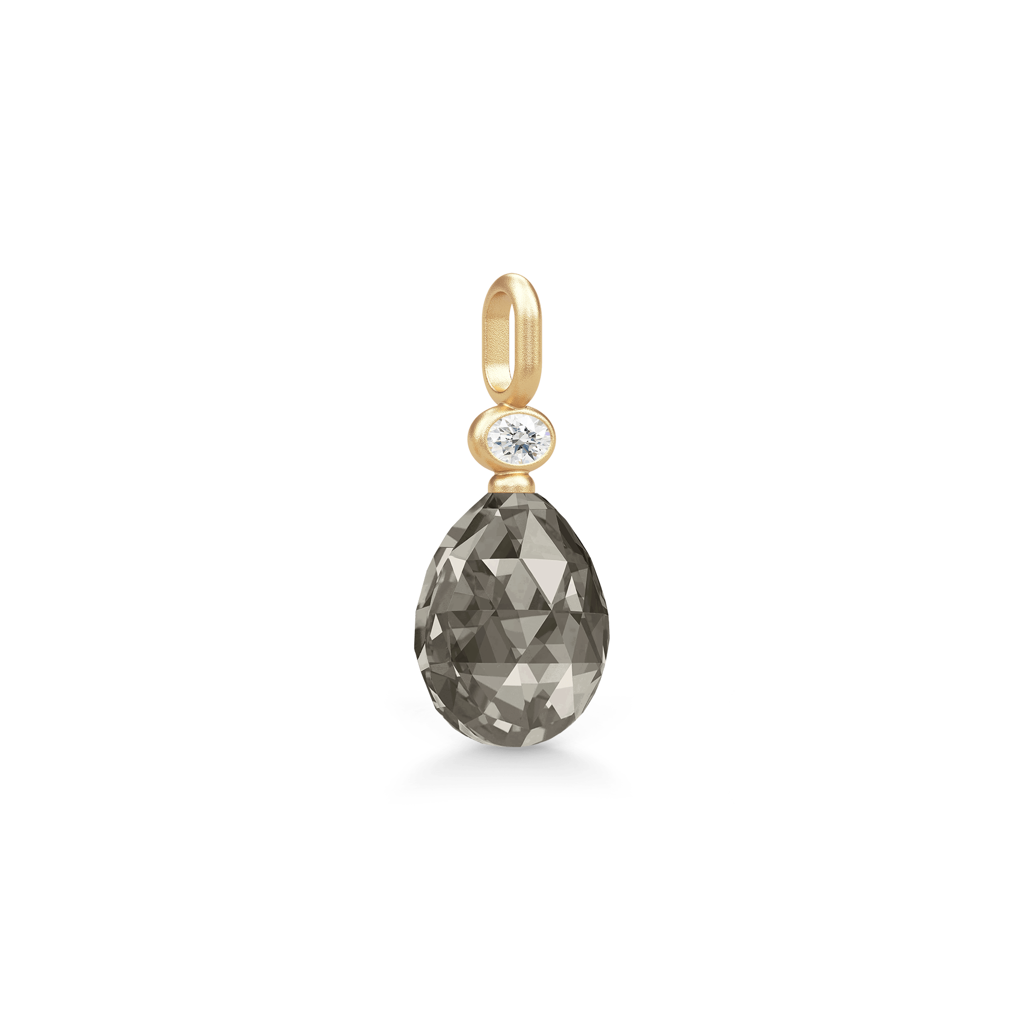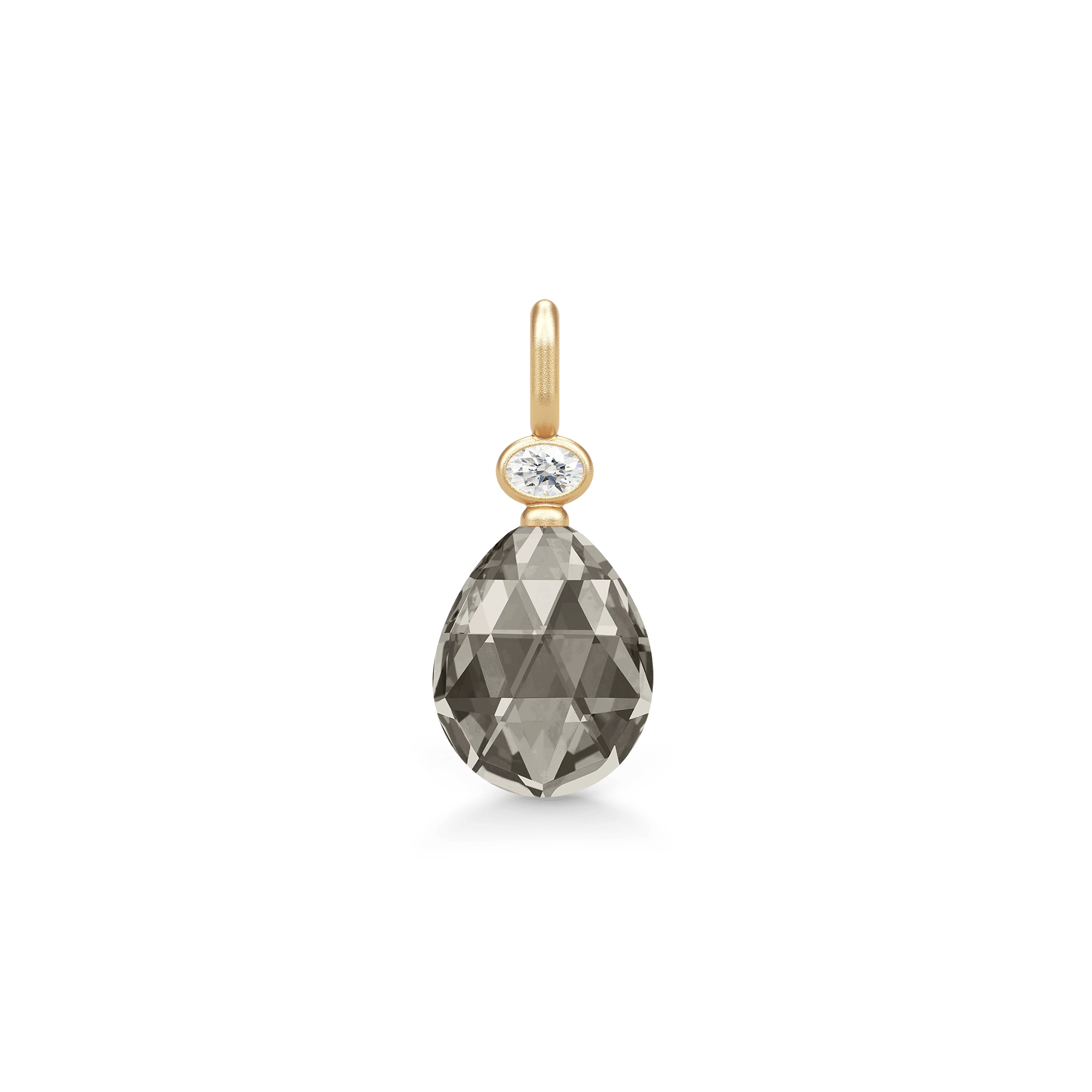 Pyntet med en rosensleben dråbeformet briolet og en hvid oval zirkonia — begge etisk fremskaffede og håndisatte.
