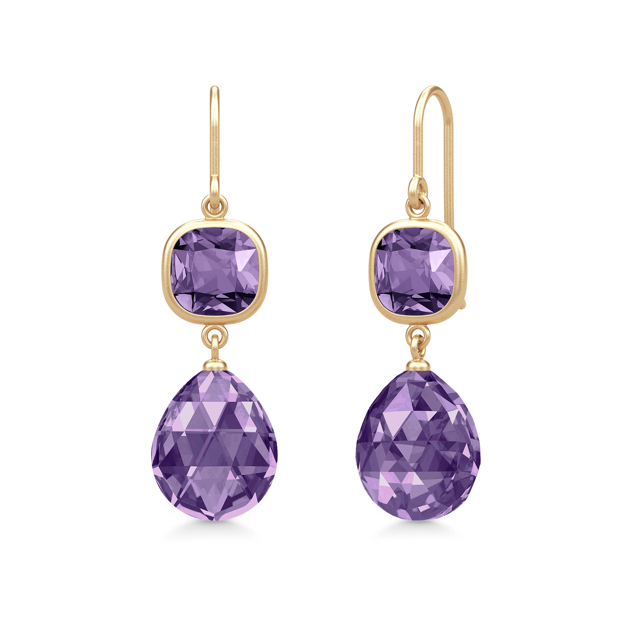 Hver ørering er prydet med en cushion-slebet sten og en dråbeformet briolet med rose-cut — begge ansvarligt udvundet og håndsat for langvarig glans.