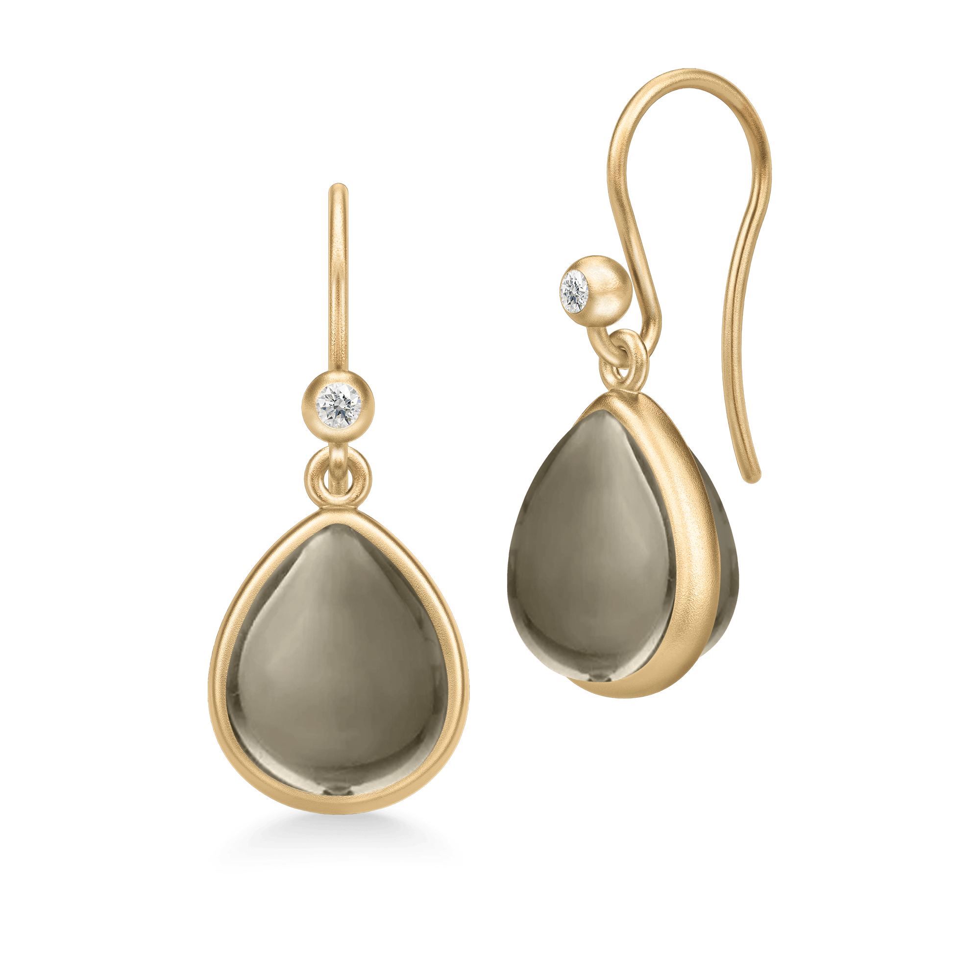 Paloma øreringe er dekoreret med pear cabonchon krystaller indrammet af et guldbånd, der repræsenterer en af Julie Sandlaus signaturer. Øreringene er håndlavet i 22 karat forgyldt 925 sterling sølv. På krogen er en funklede cubiske zirkonia, der giver øreringene ektra elegance.
