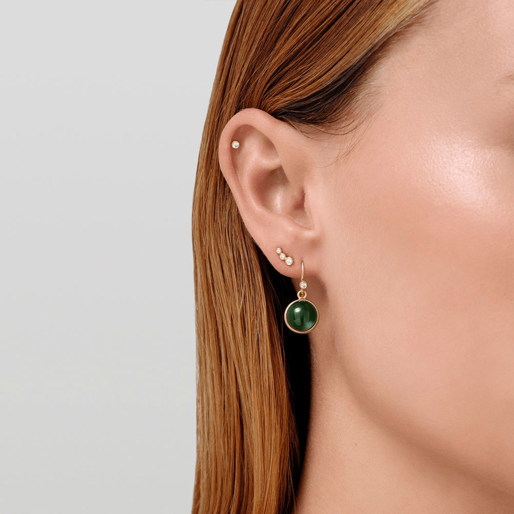 Vores ikoniske Prime Earrings er kendetegnet ved en rund cabochon slebet krystal, indrammet af det karakteristiske Julie Sandlau guld bånd. Øreringen er lavet i 22 karat forgyldt 925 sterling sølv og dekoreret med cubiske zirkonia. Disse brilliantslebne sten udgør den perfekte kontrast til forgyldningens varme og de farvede krystaller. Den runde krystal måler 10 mm i diameter. Gå på opdagelse i Prime kollektionen og find matchende ringe, vedhæng og armbånd.