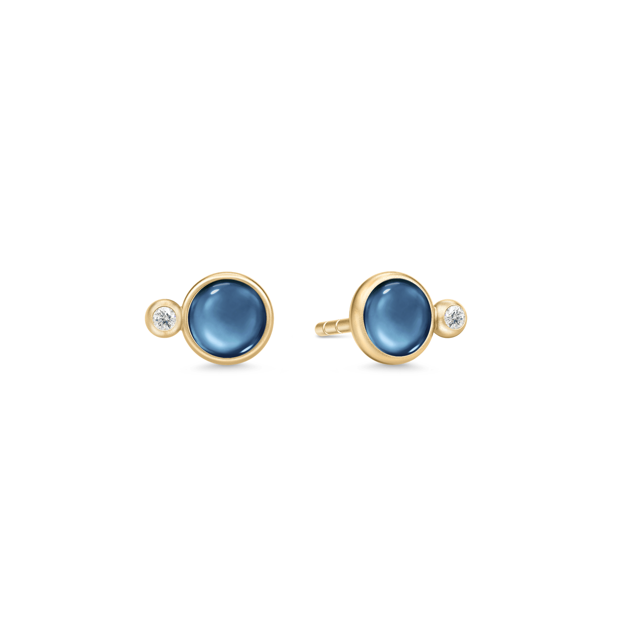 Små feminine øreringe fra Prime kollektionen håndlavet i 22 karat forgyldt 925 sterlingsølv. De ørestikker er sat med cabochonslebne krystaller og klare kubiske zirkoner. Øreringene måler 8 x 6 mm.