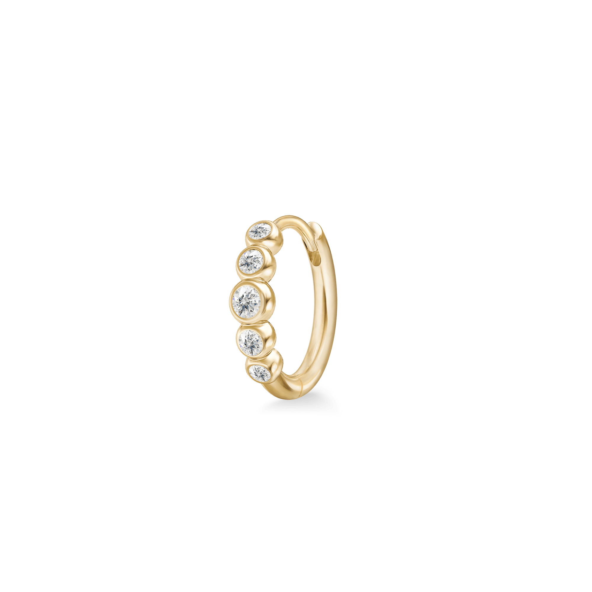 Vores Pristine Medium Hoop er fortryllende og sofistikeret og kan bæres til enhver lejlighed. Dette glamourøse design er produceret i 100% recycled 14 karat guld og prydet med fem Top Wesselton diamanter på i alt 0,125 carat. Øreringen kan med fordel styles med forskellige ear pendants og hoops for et luksuriøst udtryk. Gå på opdagelse i vores Eden kollektion og find ørevedhæng, der kan matches med vores Pristine Medium Hoop.