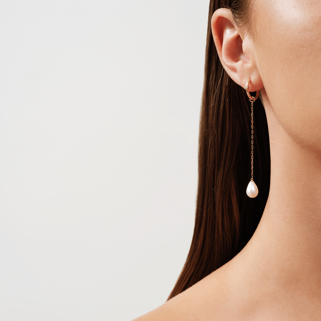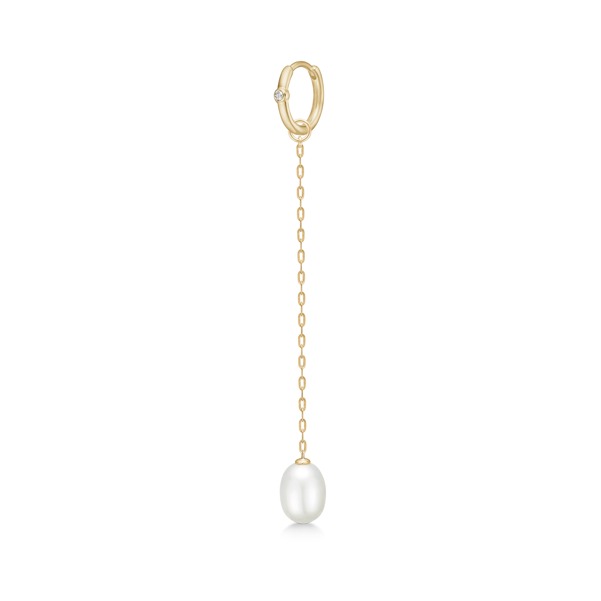 En elegant sammensætning af vores Purity Mini Hoop og Esther Ear Pendant. Denne magiske styling kombinerer naturlige diamanter, hvide ferskvandsperler og 100% recycled 14 karat guld. Smykkerne kan også købes separat.