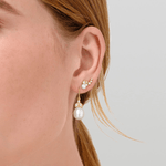 Klassiske øreringe karakteriseret ved et unikt formsprog, der fører tankerne hen på den blomstrende sommer. Øreringene er produceret i 100% genanvendt 22 karat forgyldt 925 sterling sølv, og bærer en smuk kombination af krystaller eller ferskvandsperler, runde og marquiseslebne kubiske zirkonia. Måler 29,8 x 10 mm