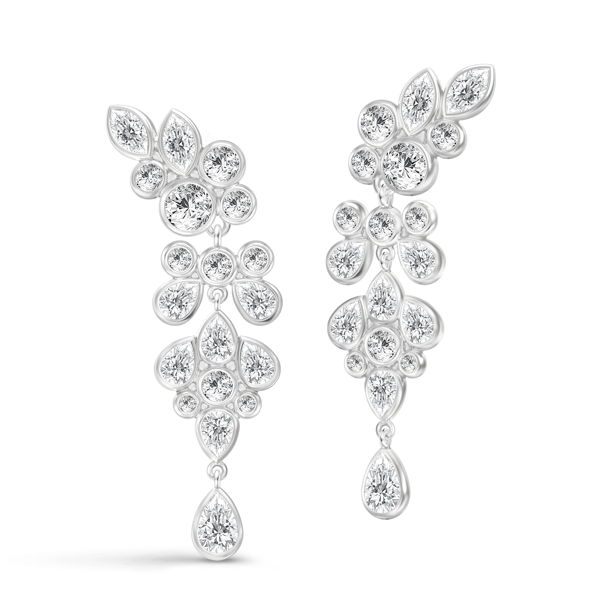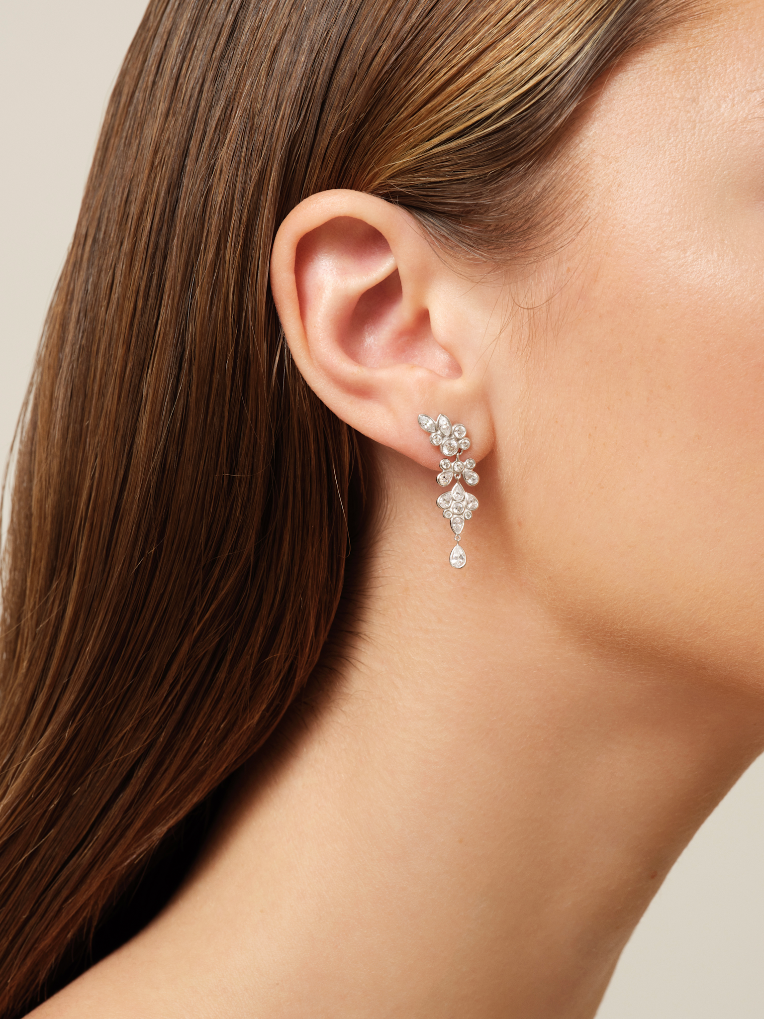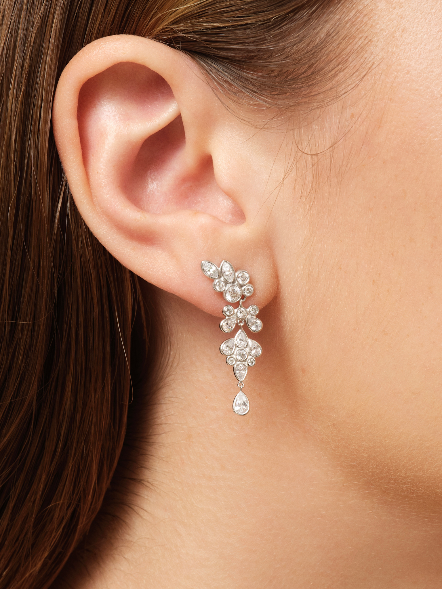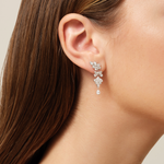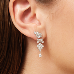 Denne enestående White Wisteria Chandelier består af et ekstraordinært og fortryllende design, som udstråler feminin elegance. Designet består af en kombination af round cut, pear cut og marquise cut cubiske zirkonia, der stråler til enhver lejlighed. Øreringen er lavet i 925 sterling sølv og måler 30,1 mm. Denne ørering kan let kombineres med vores Meadow Butterfly pendant for at skabe et fuldendt og harmonisk look. Dette look kan fås i satin finish forgyldning eller poleret rhodinering.